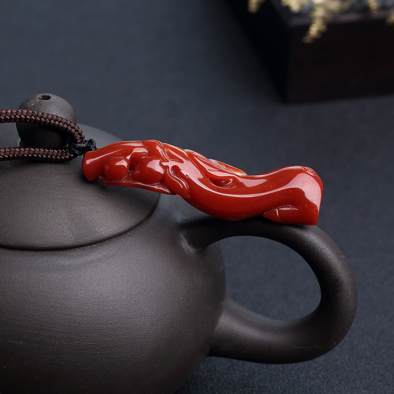 • 阿卡正红珊瑚如意吊坠