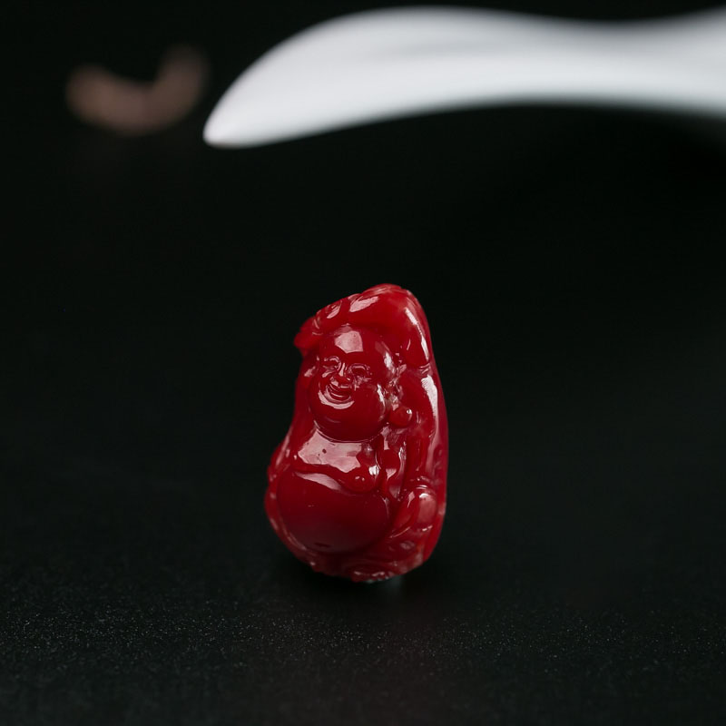 • 阿卡牛血红珊瑚弥勒佛吊坠