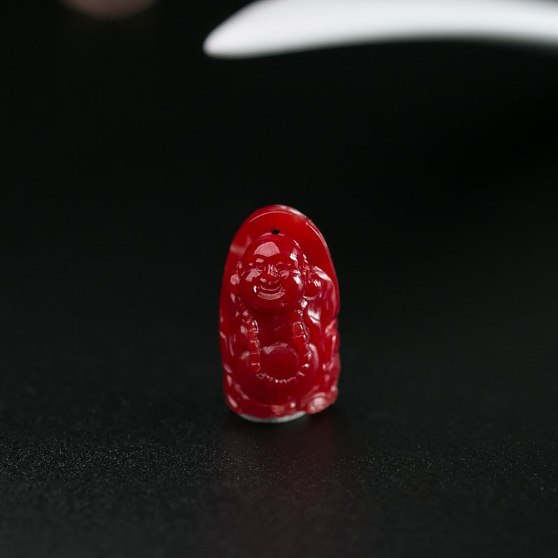 • 阿卡牛血红珊瑚弥勒佛吊坠