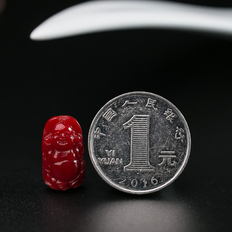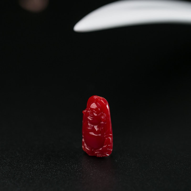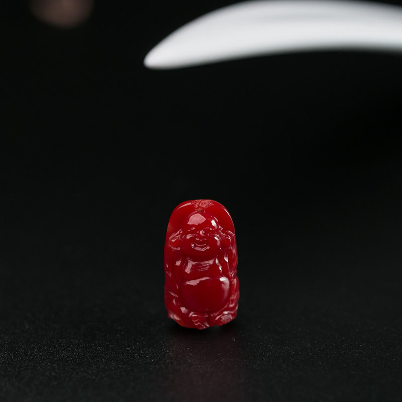 • 阿卡牛血红珊瑚弥勒佛吊坠
