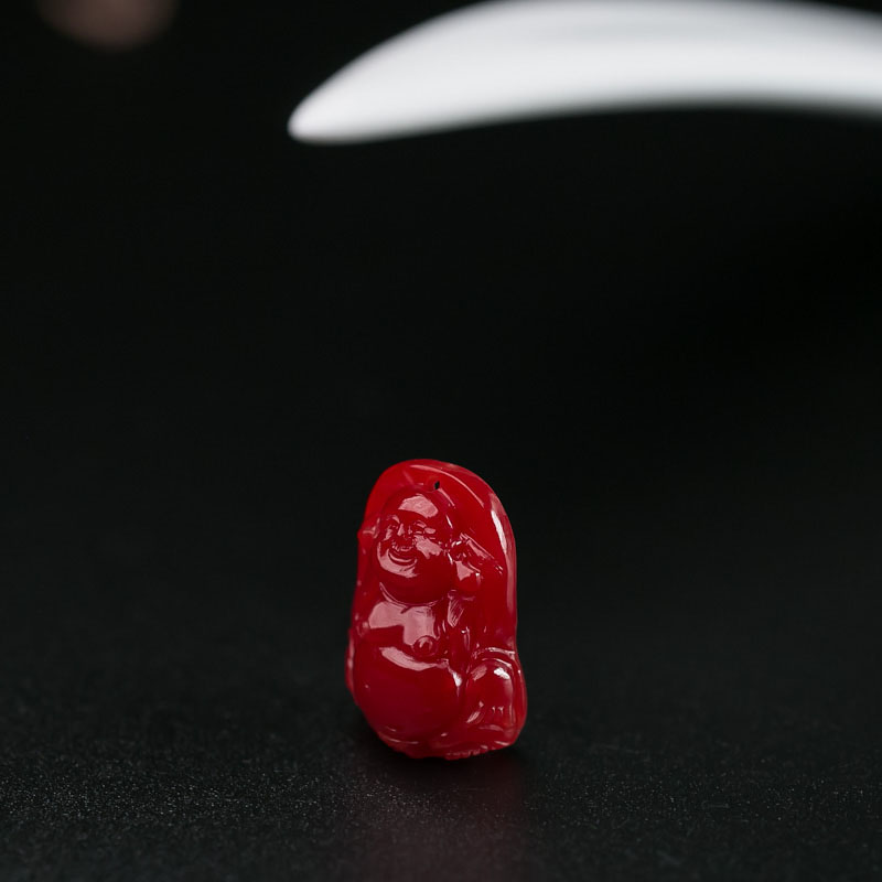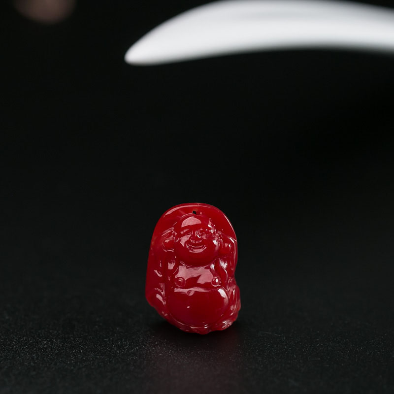 • 阿卡牛血红珊瑚弥勒佛吊坠