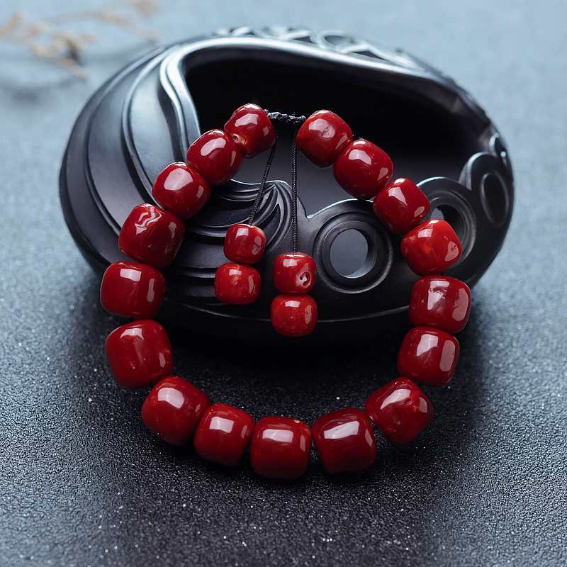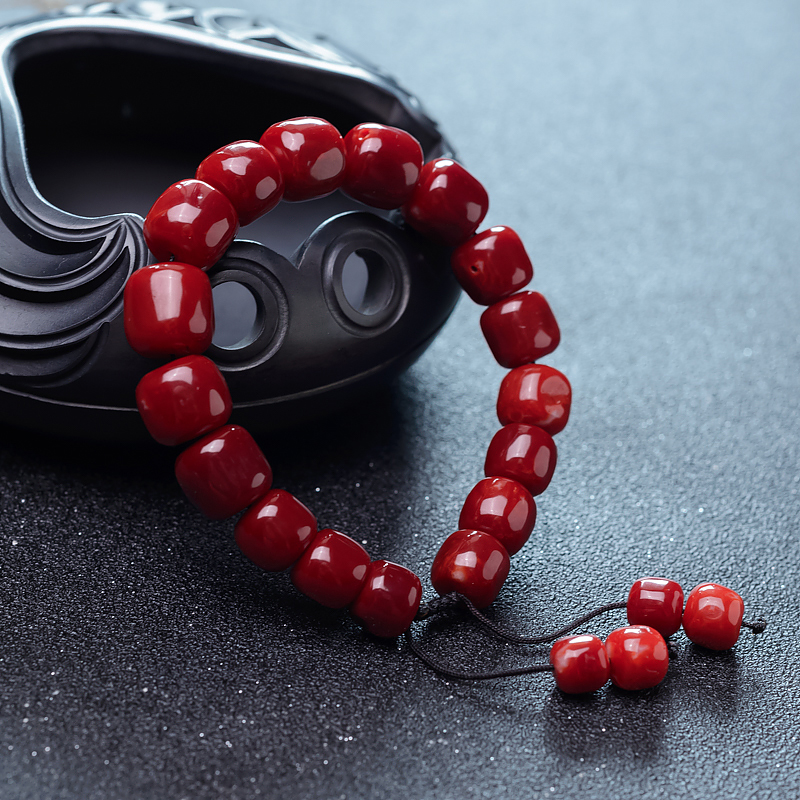 • 阿卡牛血红珊瑚桶珠单圈手串
