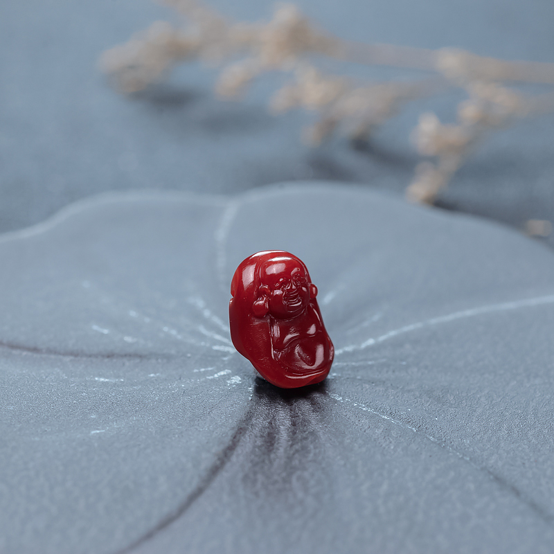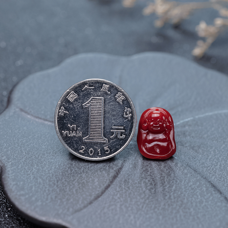 • 阿卡牛血红珊瑚弥勒佛吊坠