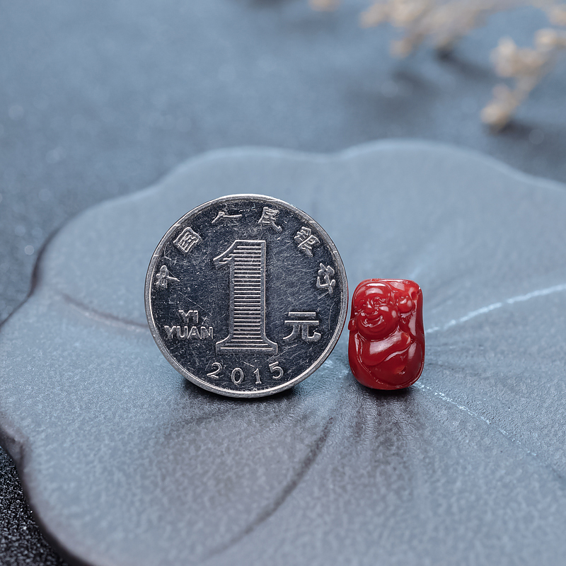 • 阿卡牛血红珊瑚弥勒佛吊坠