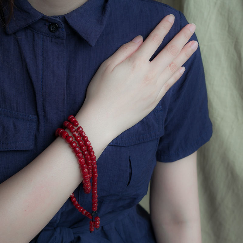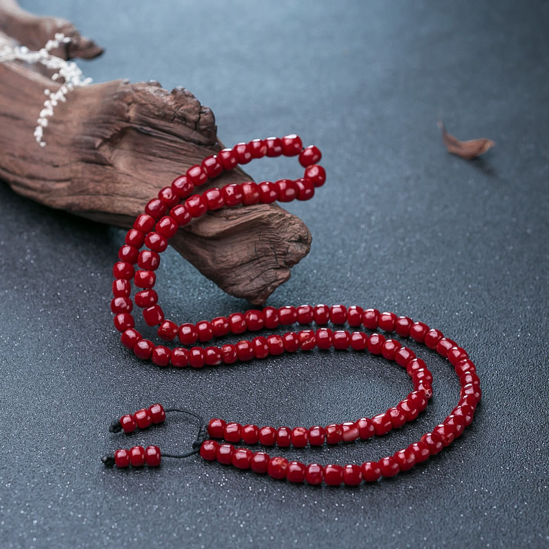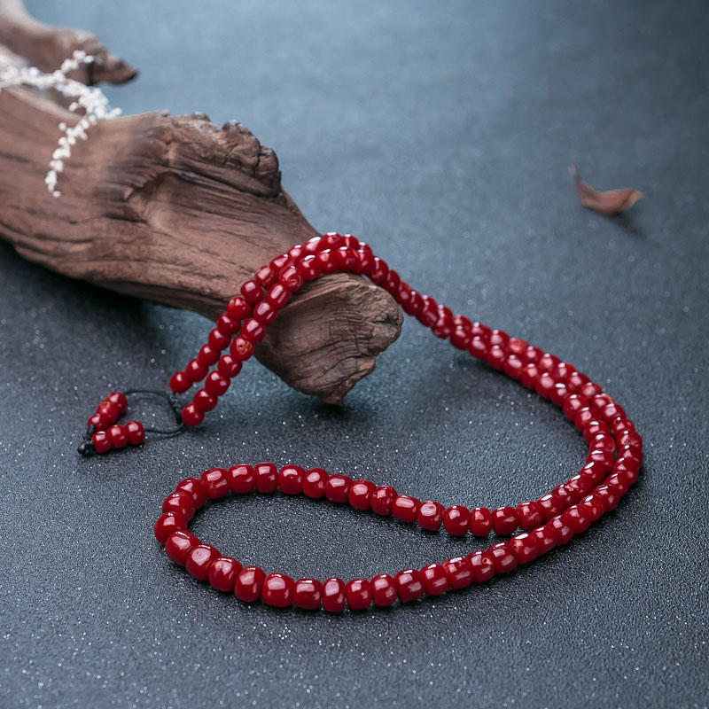• 阿卡牛血红珊瑚桶珠108佛珠