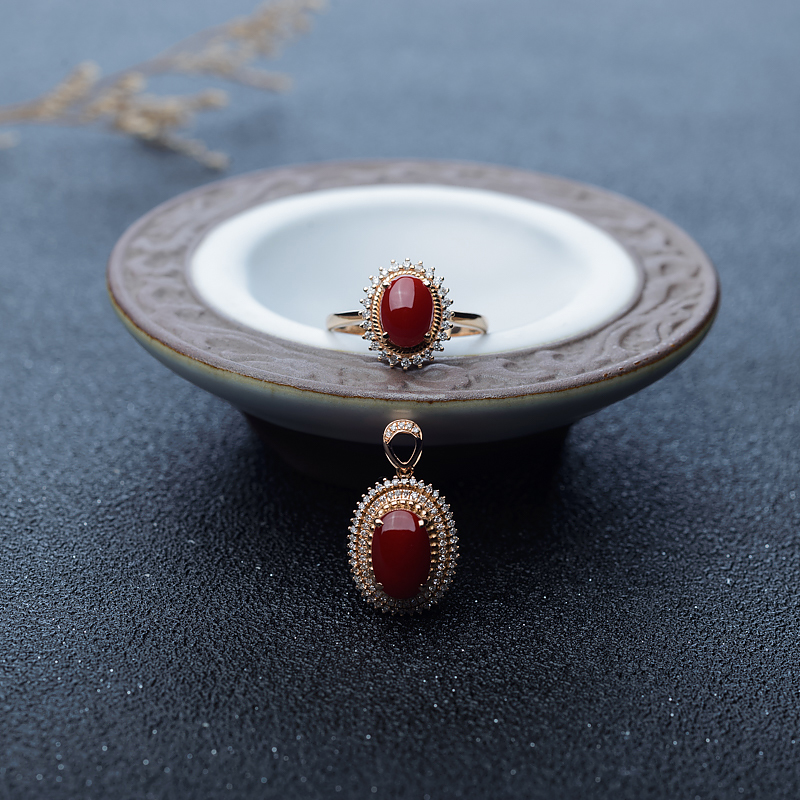 • [名  称] 18K阿卡牛血红珊瑚套装(两件)