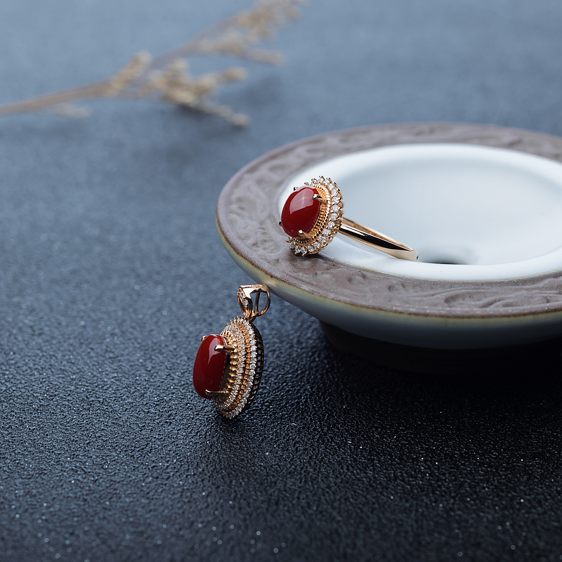 • 18K阿卡牛血红珊瑚套装(两件)