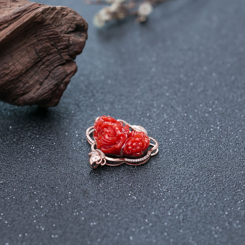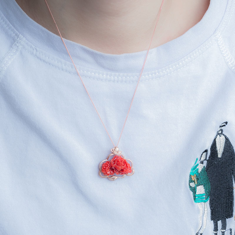 • [名  称] 18K阿卡珊瑚牡丹花吊坠
