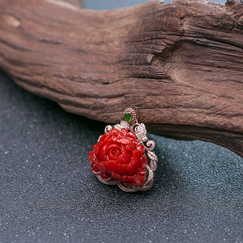 • [名  称] 18K阿卡珊瑚牡丹花吊坠