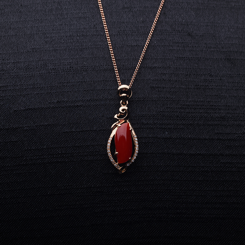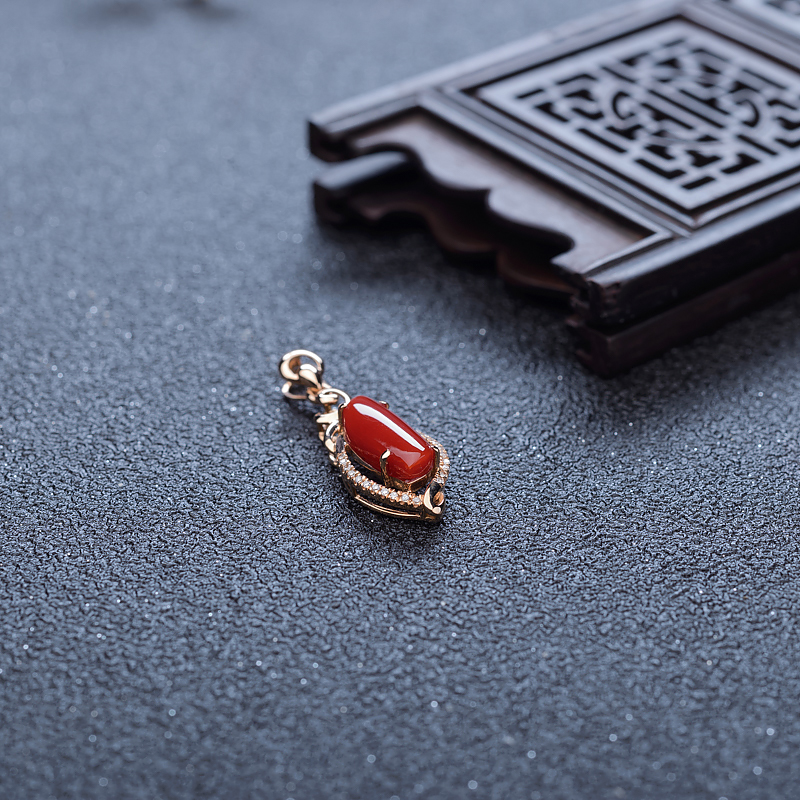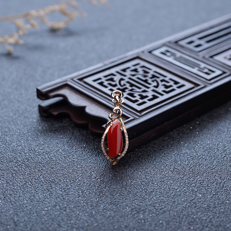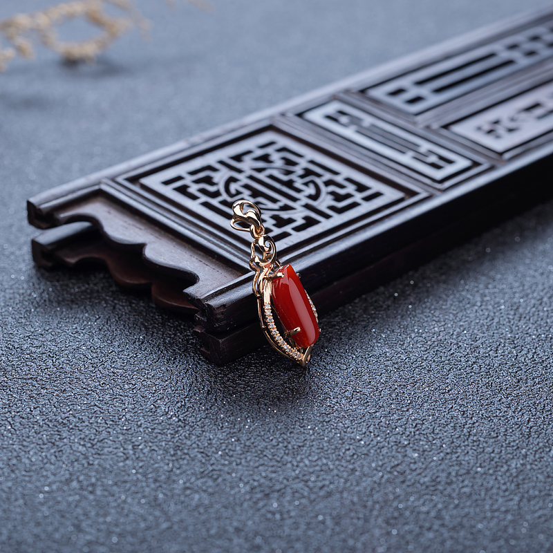 • [名  称] 18K阿卡牛血红珊瑚随形吊坠