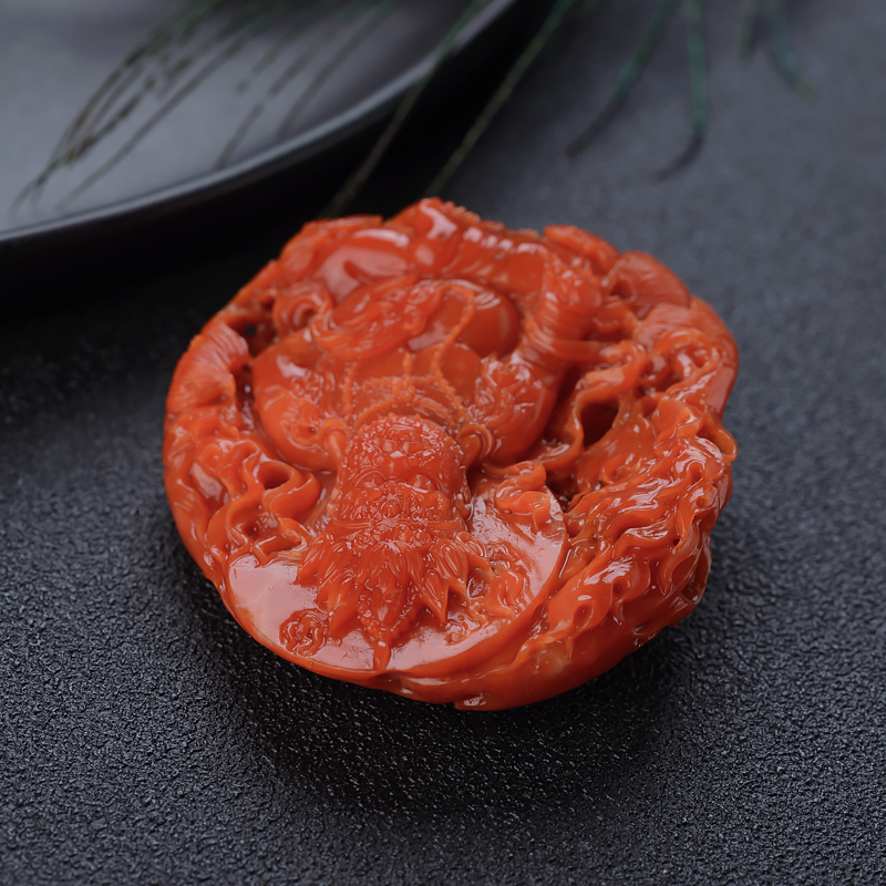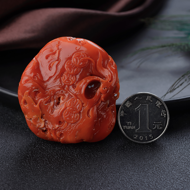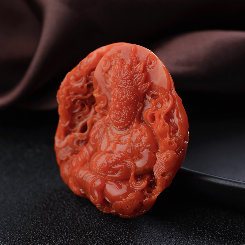 • 阿卡珊瑚黄财神吊坠