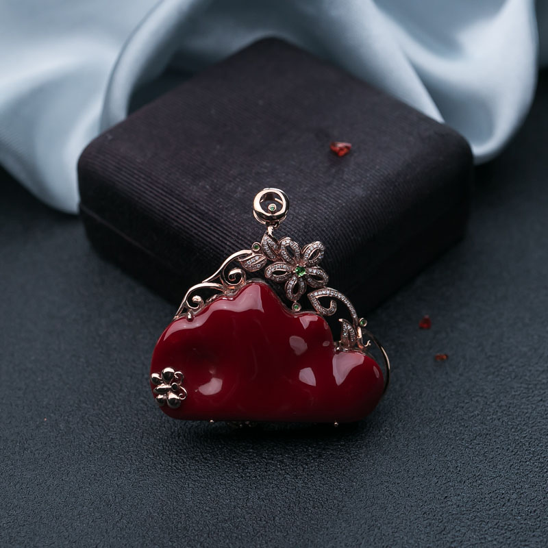 • 18K阿卡牛血红珊瑚吊坠