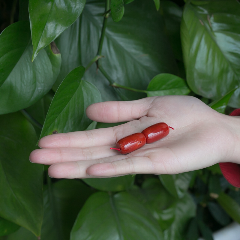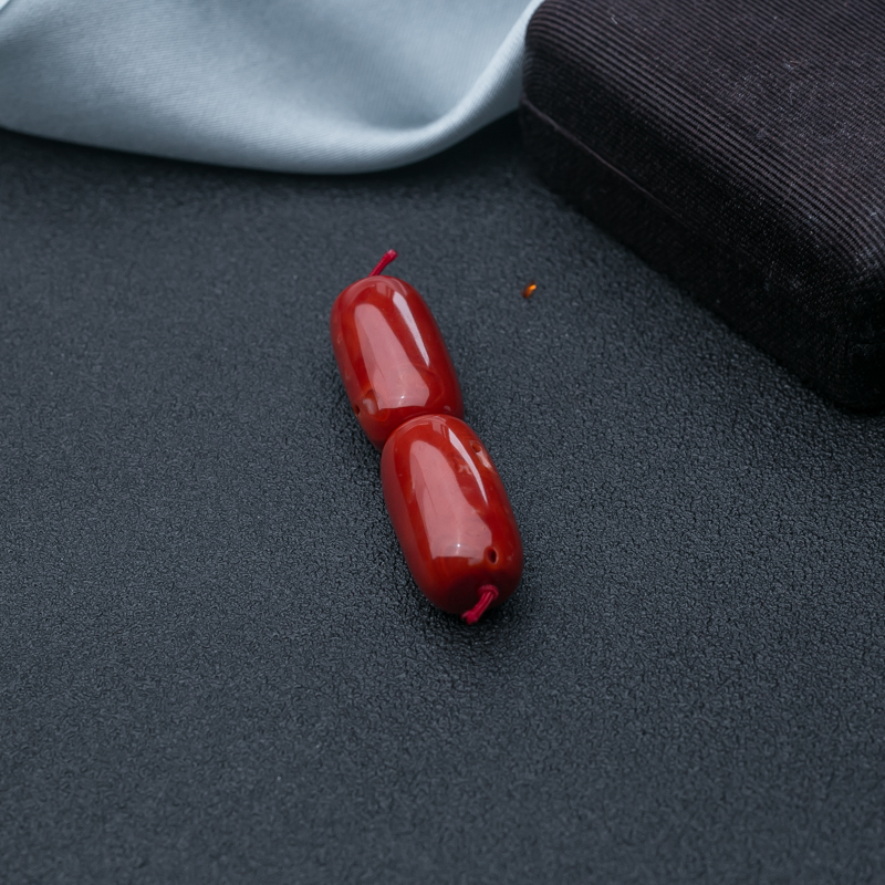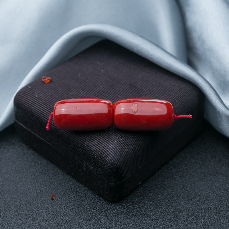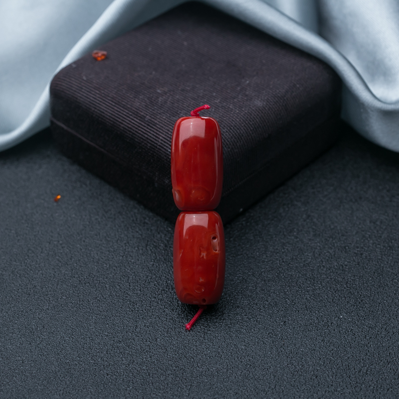 • 阿卡珊瑚长鼓珠(两件)