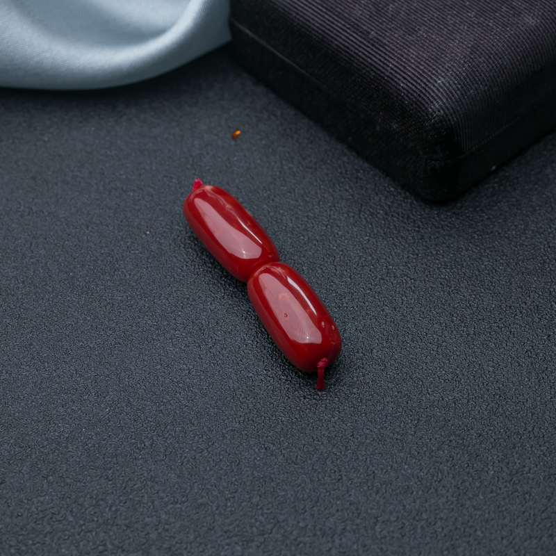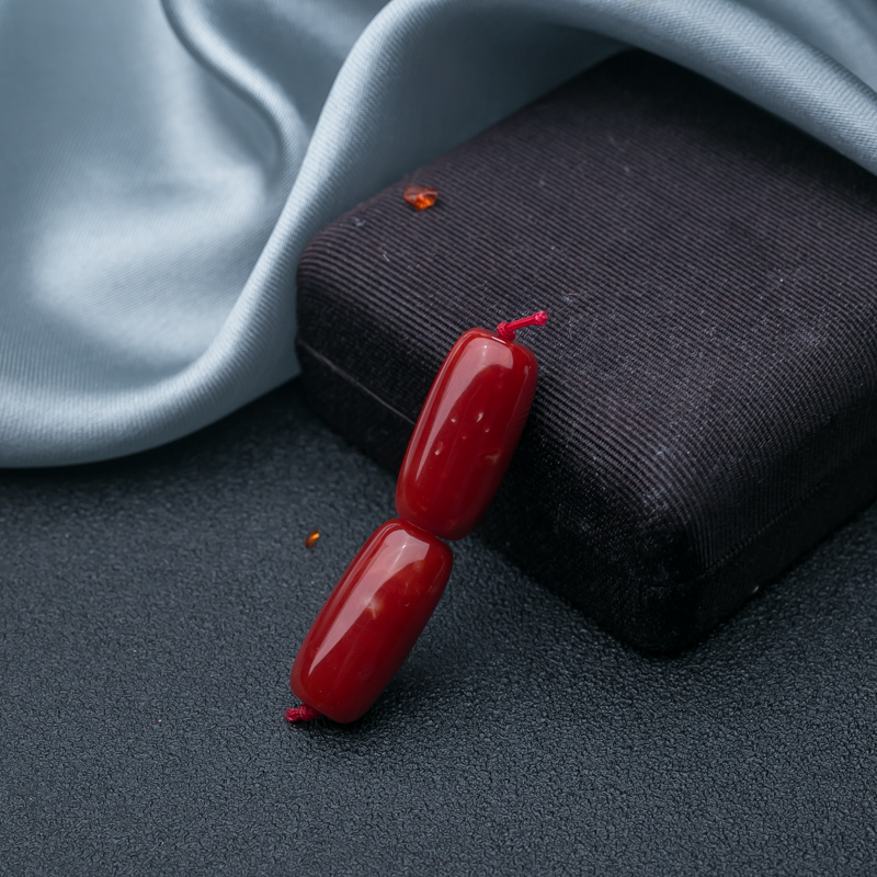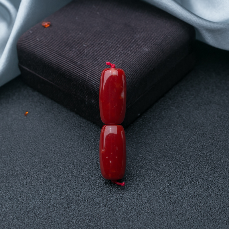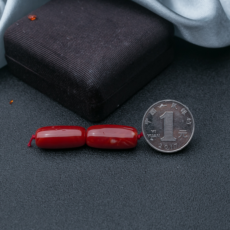 • 阿卡牛血红珊瑚长鼓珠(两件)