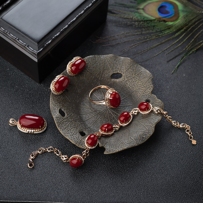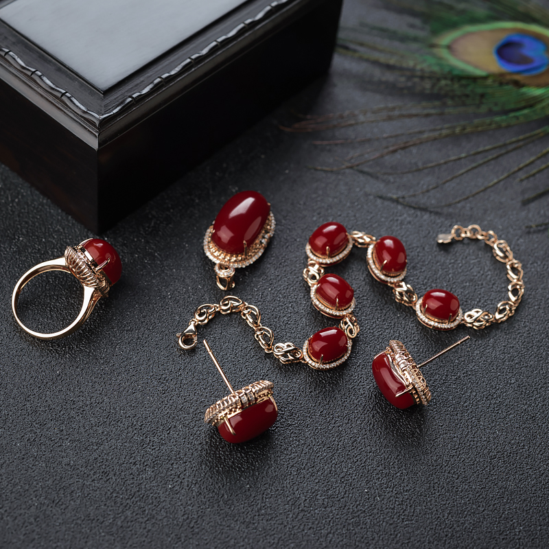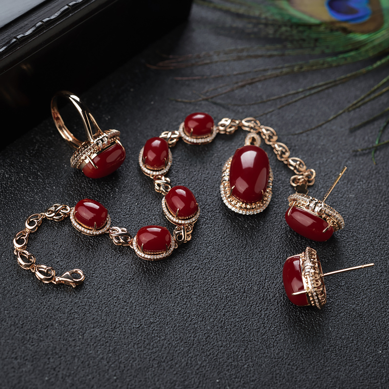• [名  称] 18K阿卡牛血红珊瑚套装