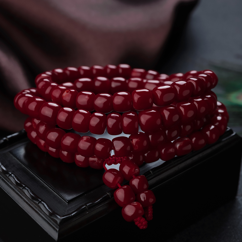 • 阿卡牛血红珊瑚桶珠108佛珠
