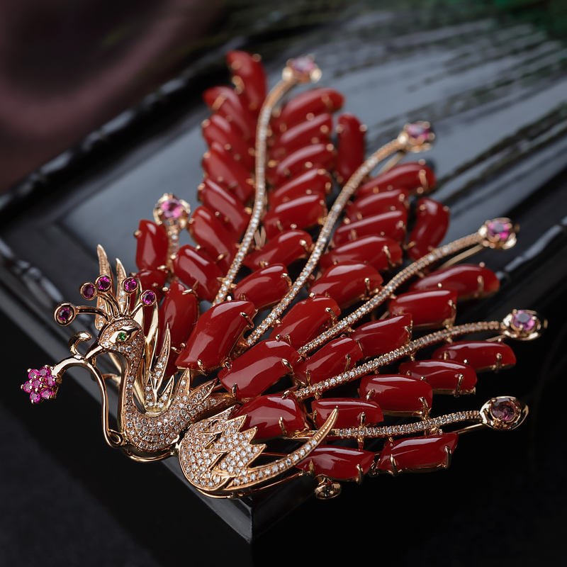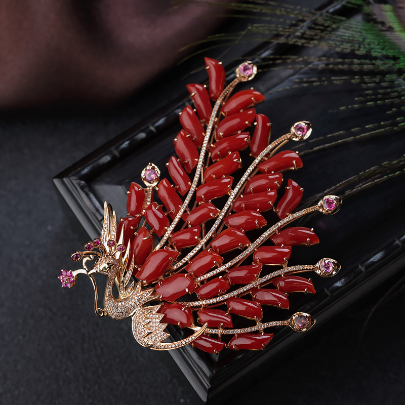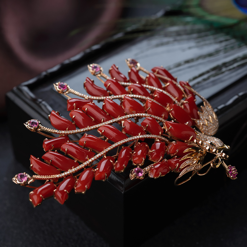 • [名  称] 18K阿卡珊瑚凤凰胸针