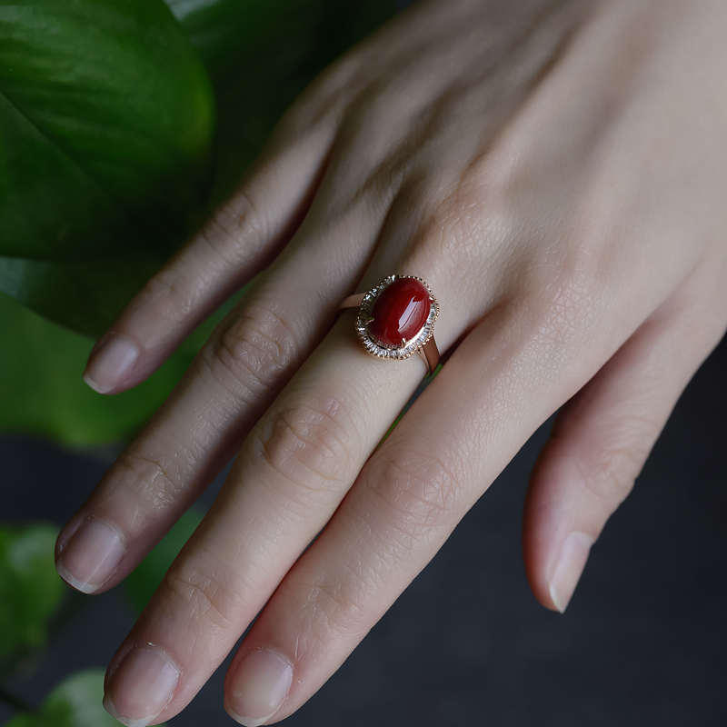 • 18K阿卡牛血红珊瑚戒指