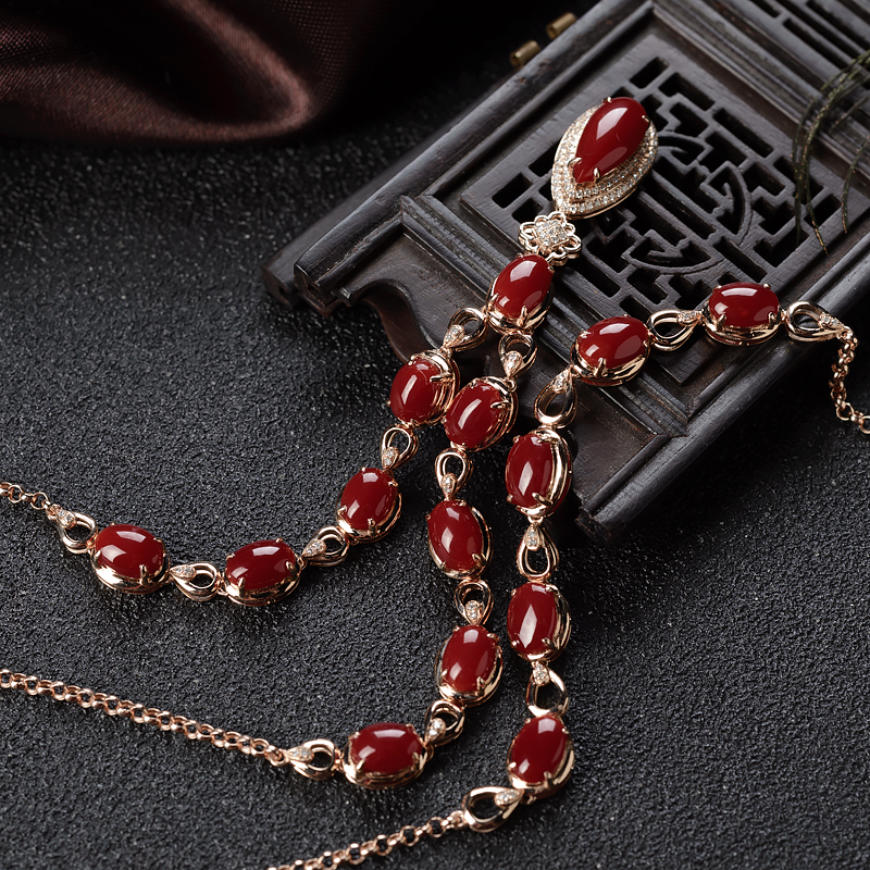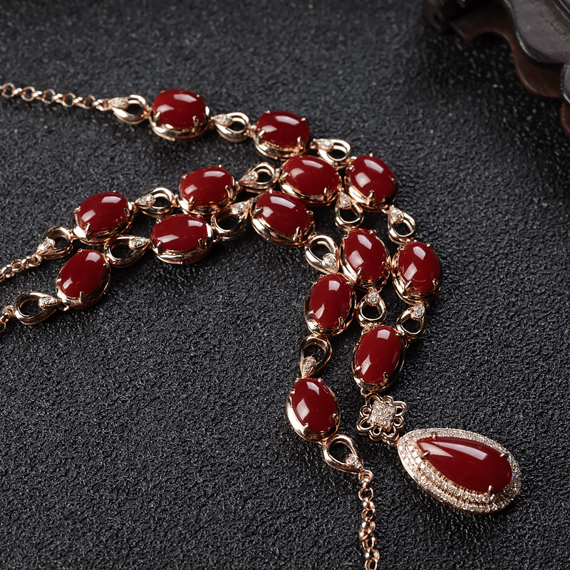 • 18K阿卡牛血红珊瑚项链/手链套装