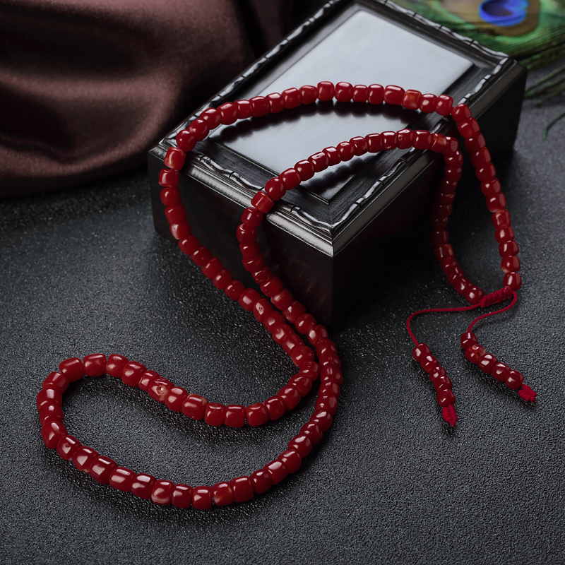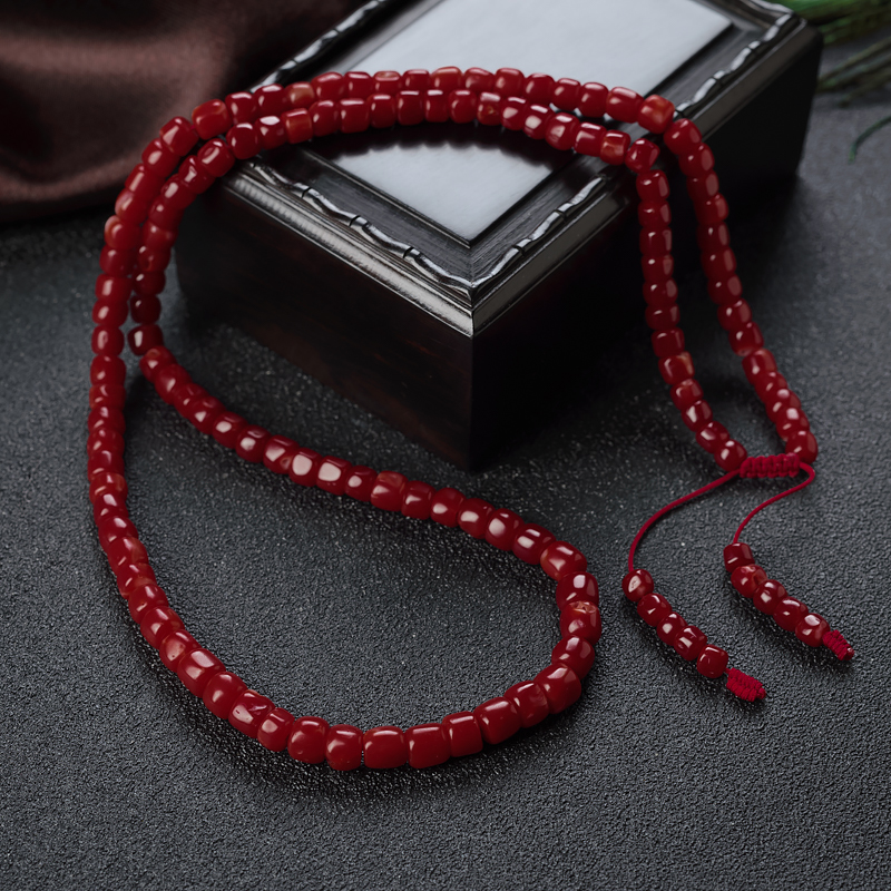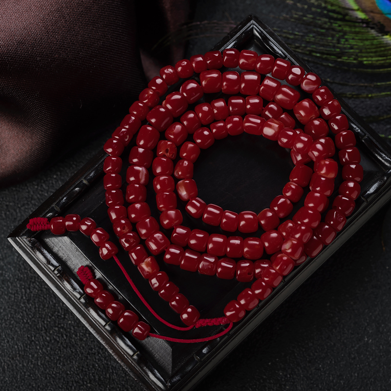 • 阿卡牛血红珊瑚桶珠多圈手串