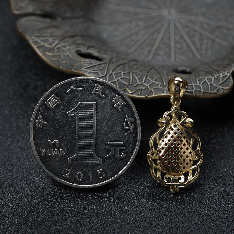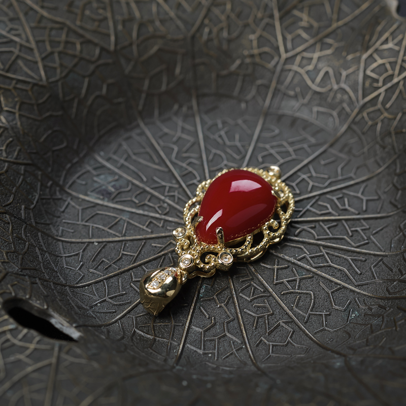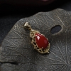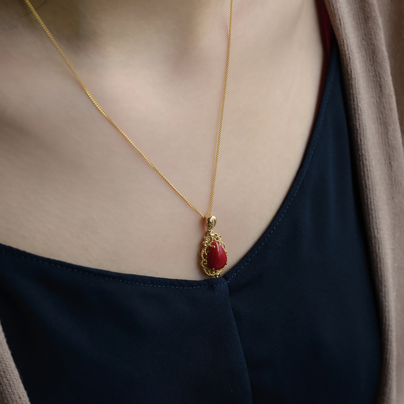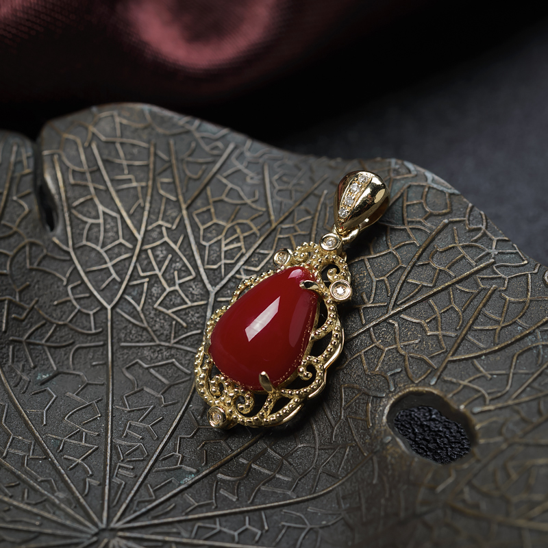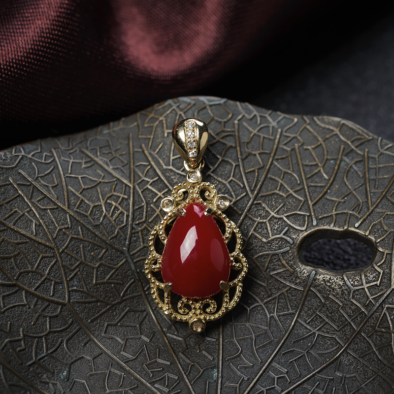 • 18K阿卡牛血红珊瑚水滴吊坠