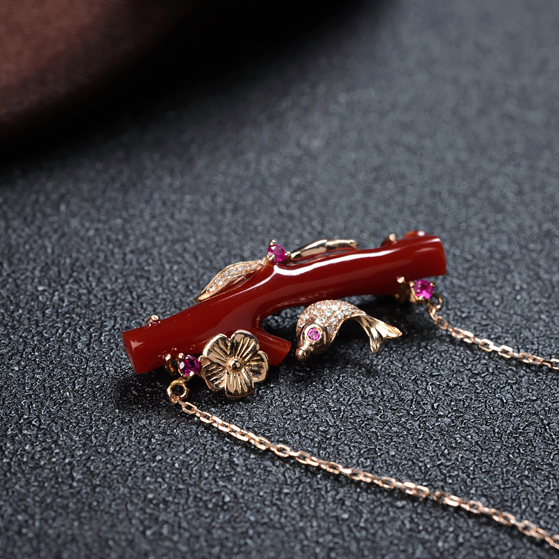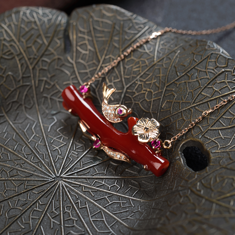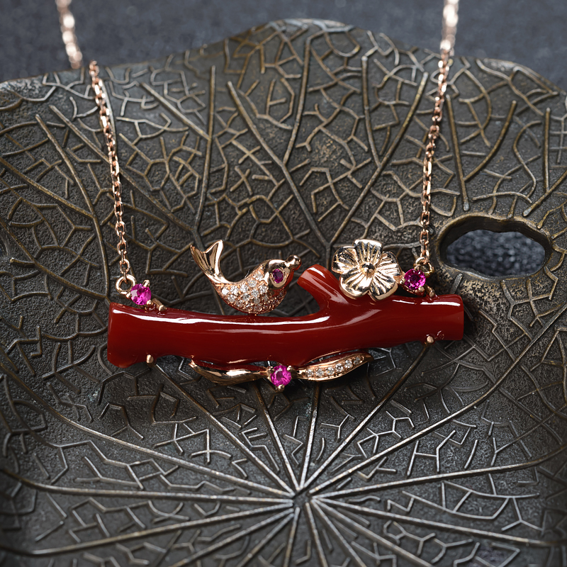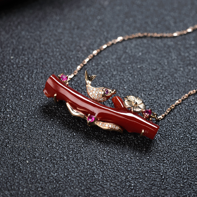 • 18K阿卡牛血红珊瑚树枝项链