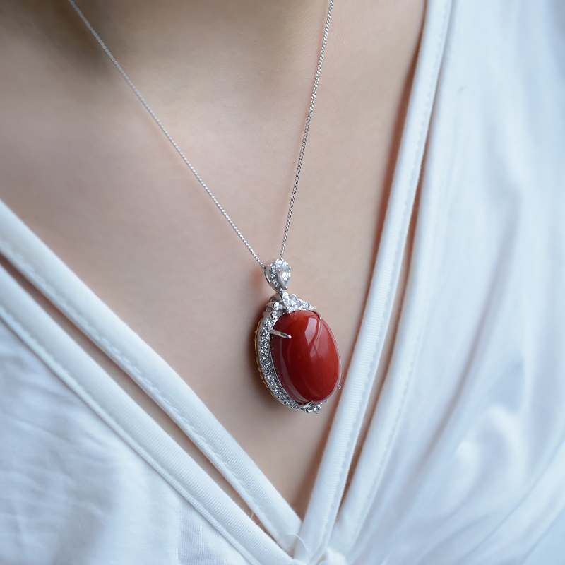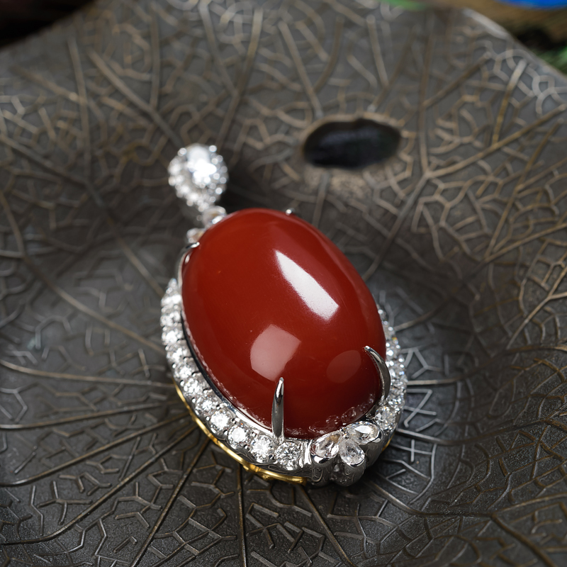 • 18K阿卡珊瑚蛋面形吊坠