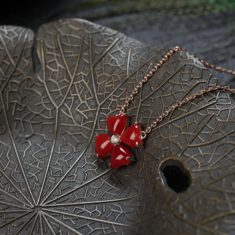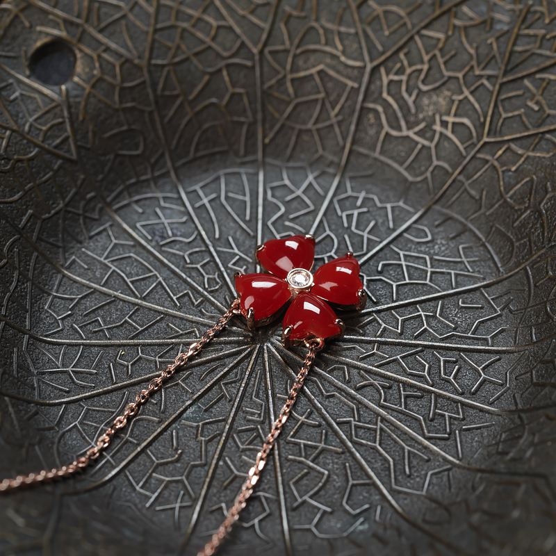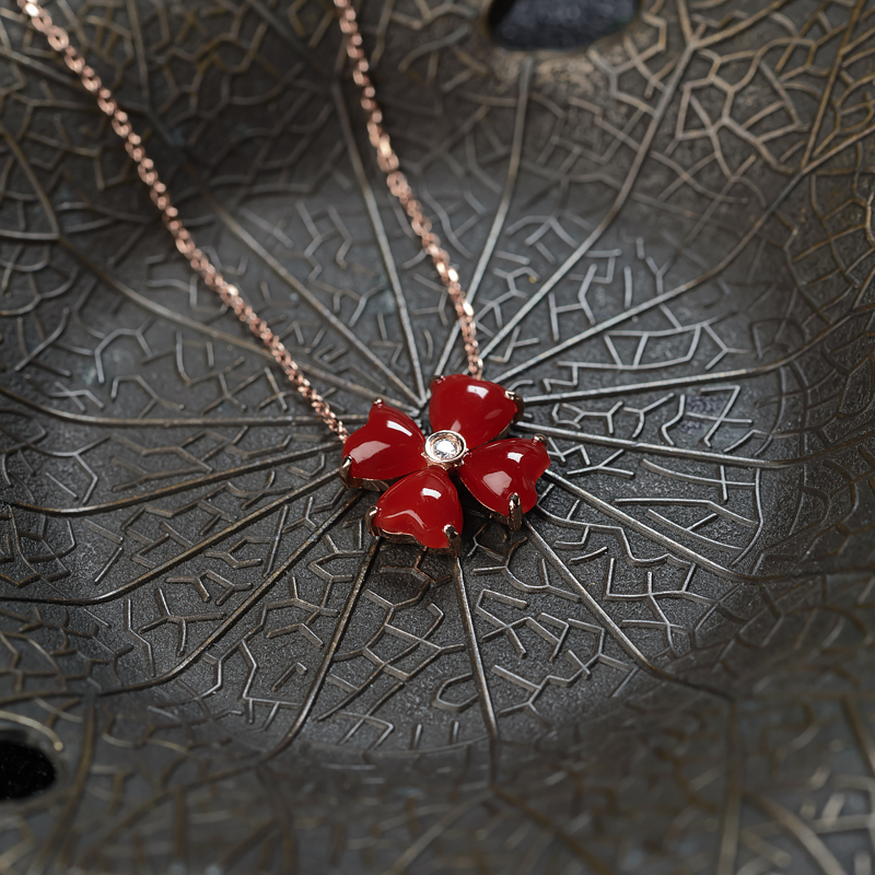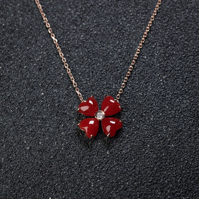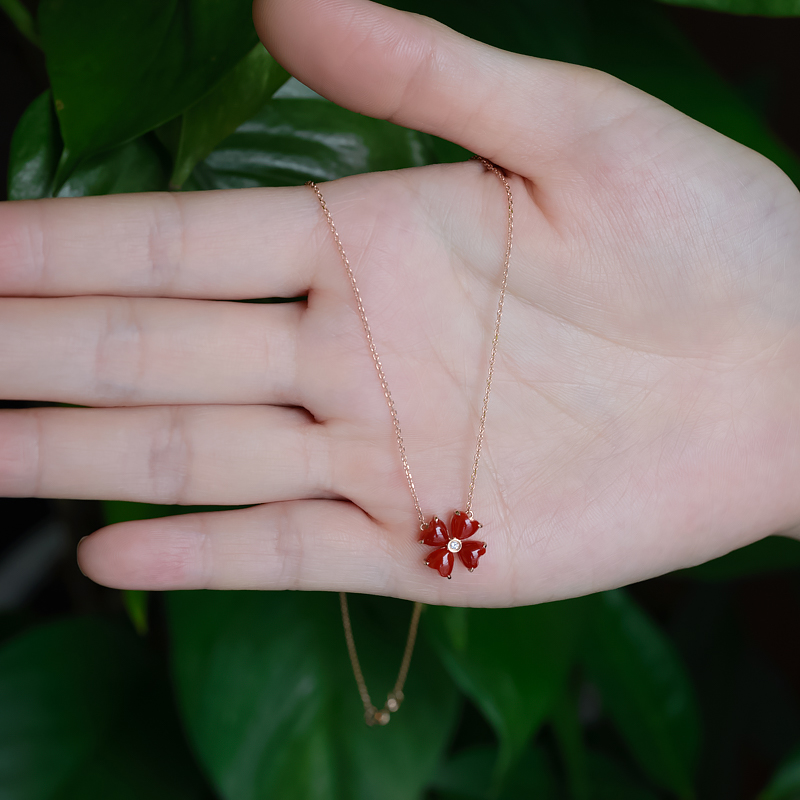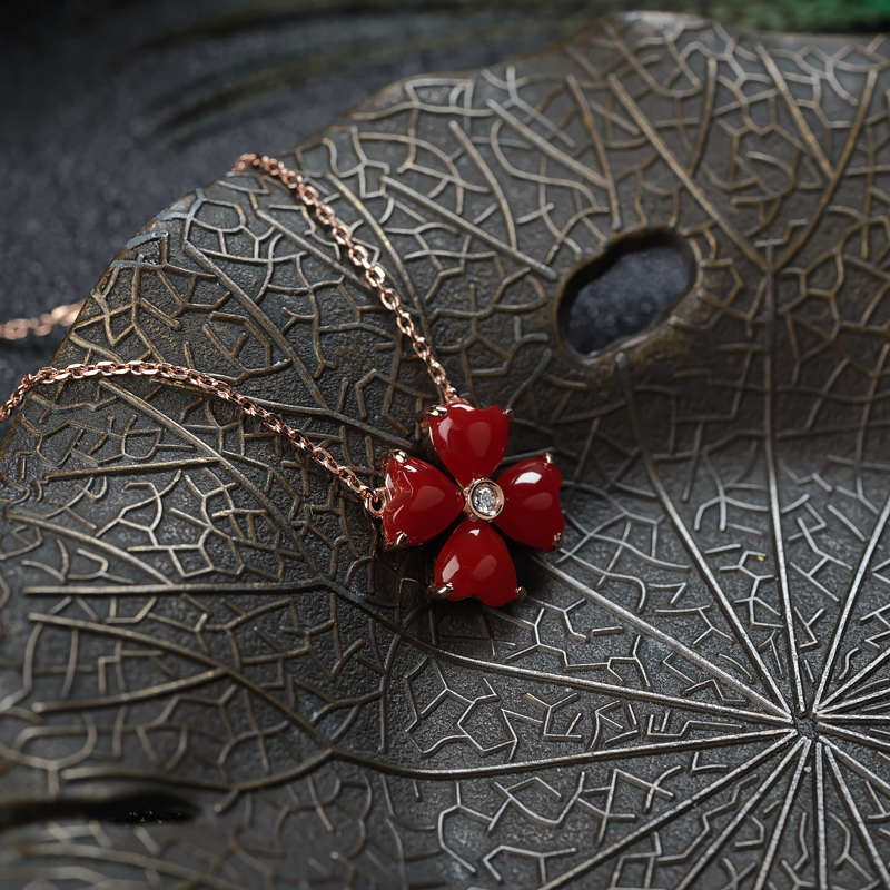 • [名  称] 18K阿卡牛血红珊瑚花朵项链