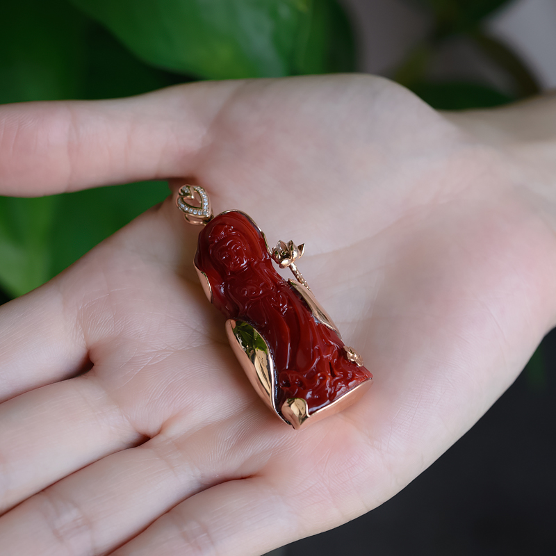 • 18K阿卡牛血红珊瑚观音吊坠