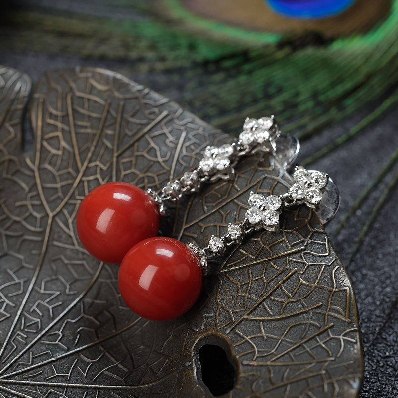 • [名  称] 18K阿卡珊瑚圆珠耳坠