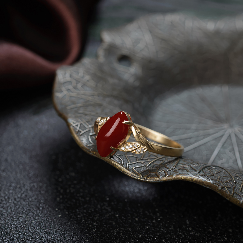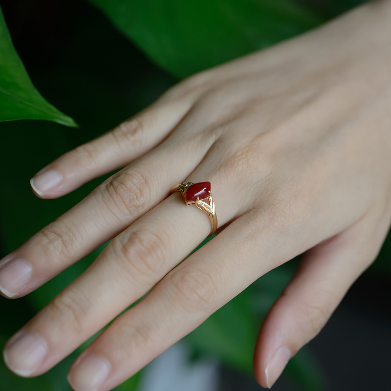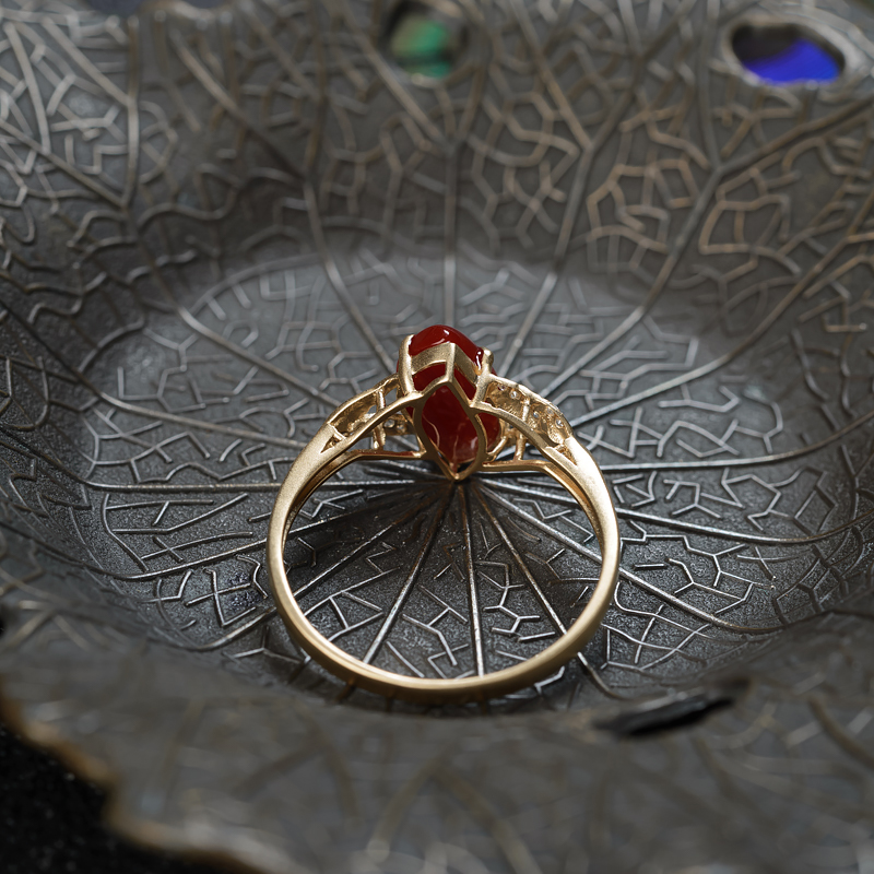 • [名  称] 18K阿卡牛血红珊瑚随形戒指