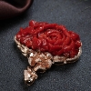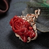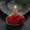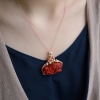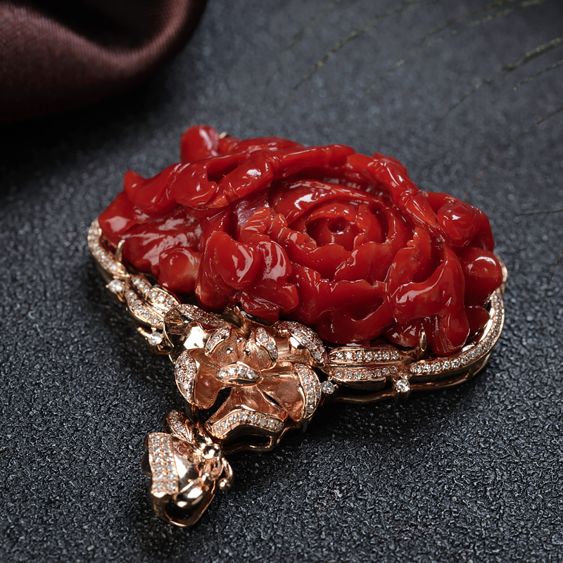 • 18K阿卡牛血红珊瑚牡丹花吊坠