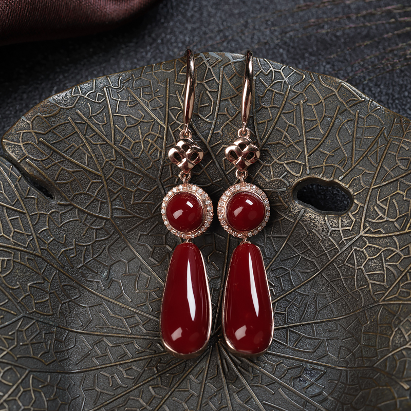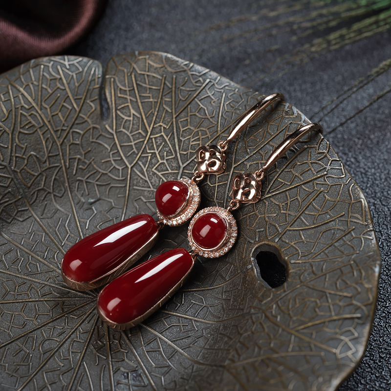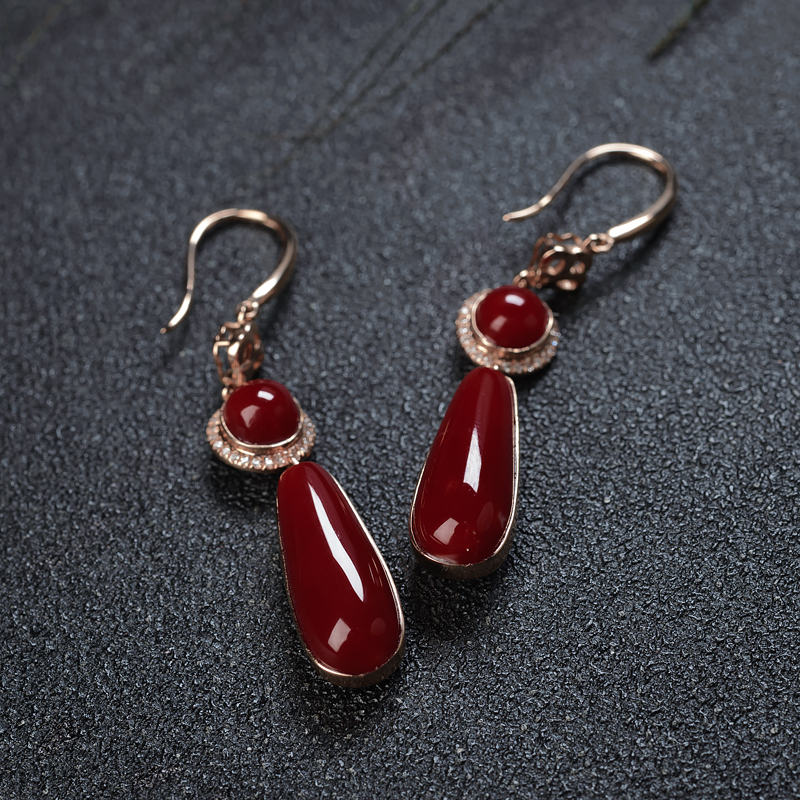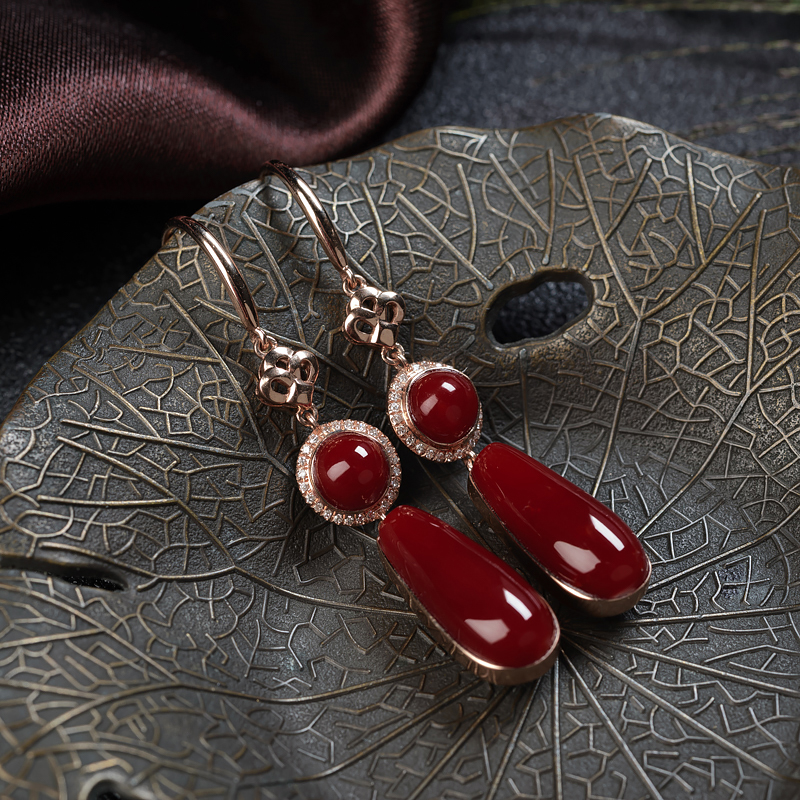 • 18K阿卡牛血红珊瑚水滴耳坠