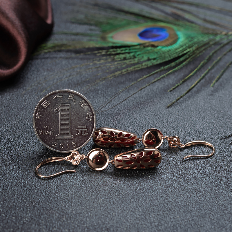 • [名  称] 18K阿卡牛血红珊瑚水滴耳坠