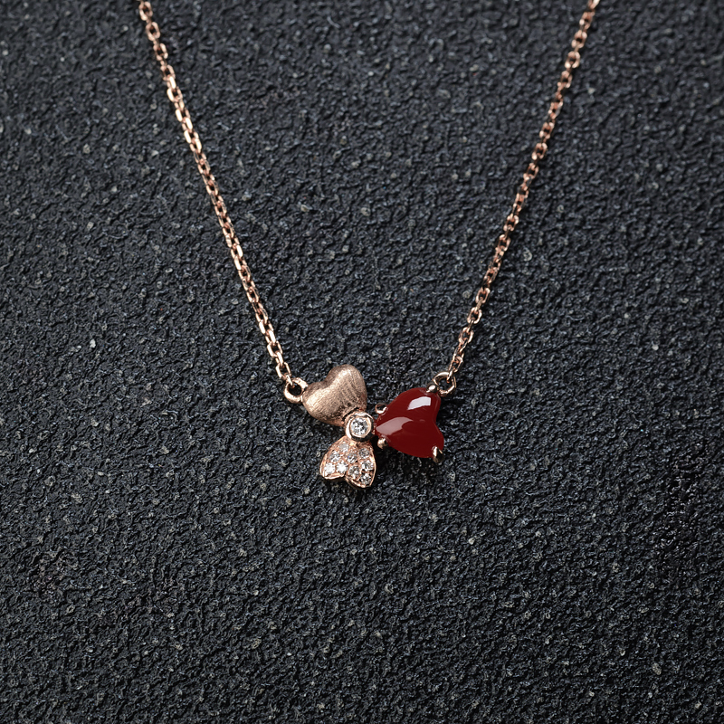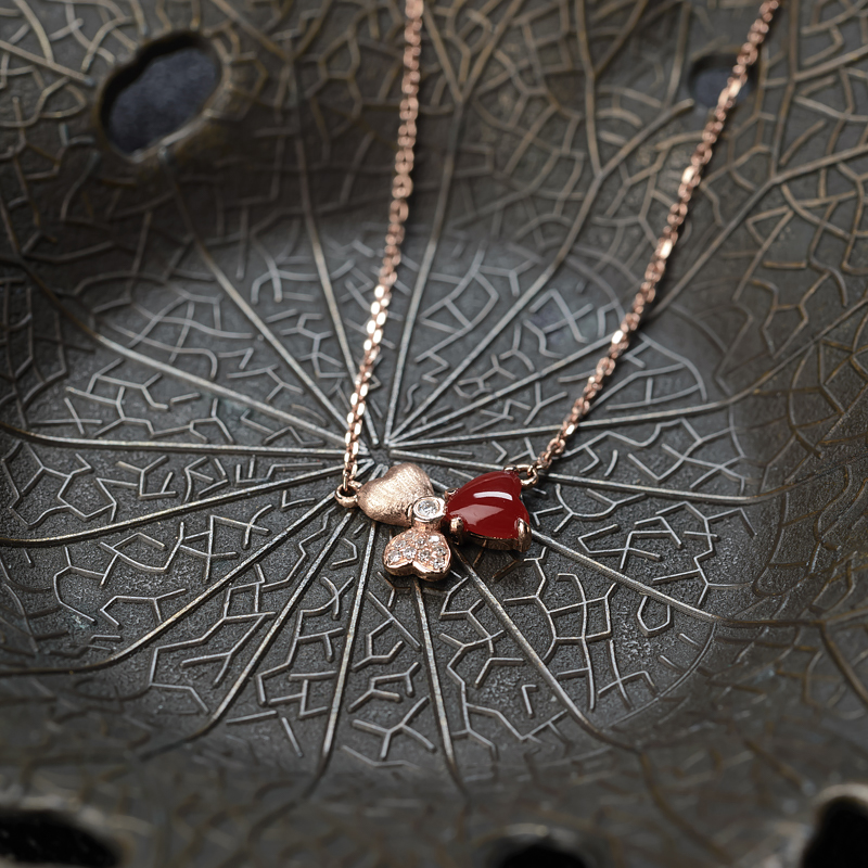 • [名  称] 18K阿卡牛血红珊瑚心形项链