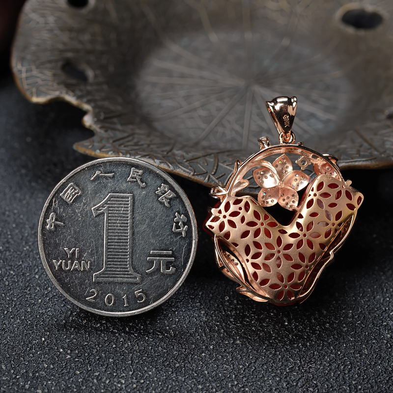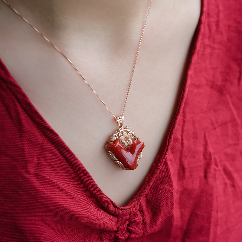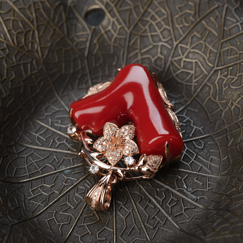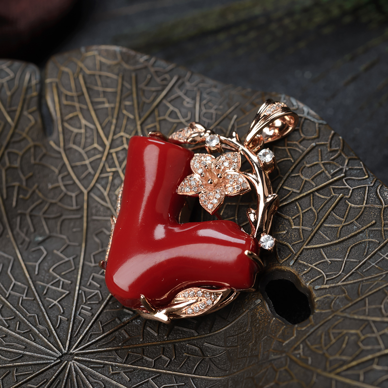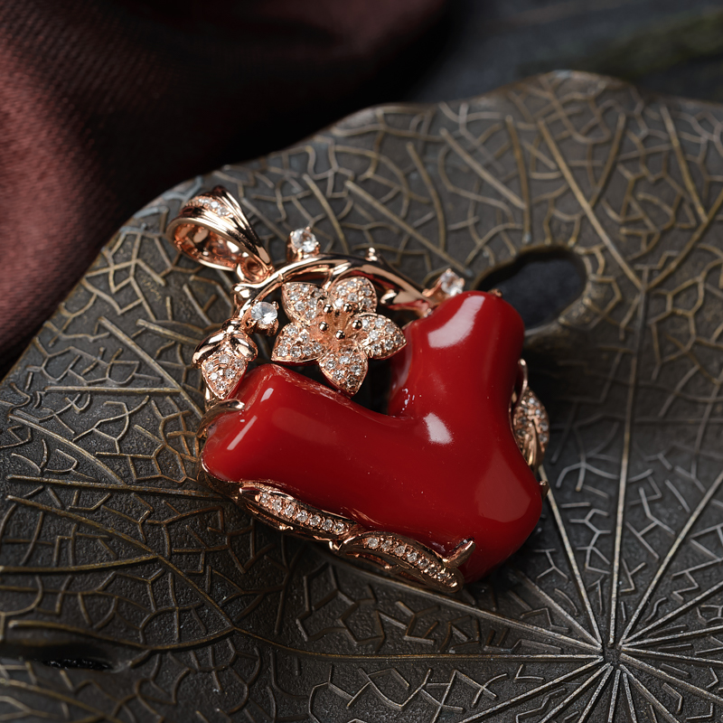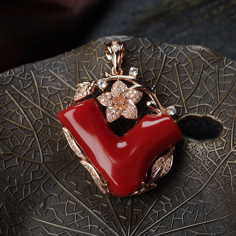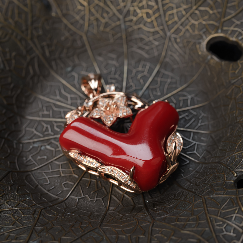 • 18K阿卡牛血红珊瑚树枝吊坠