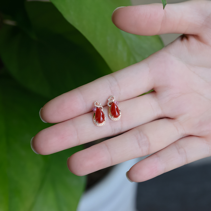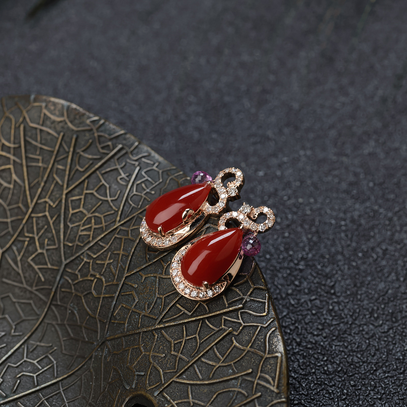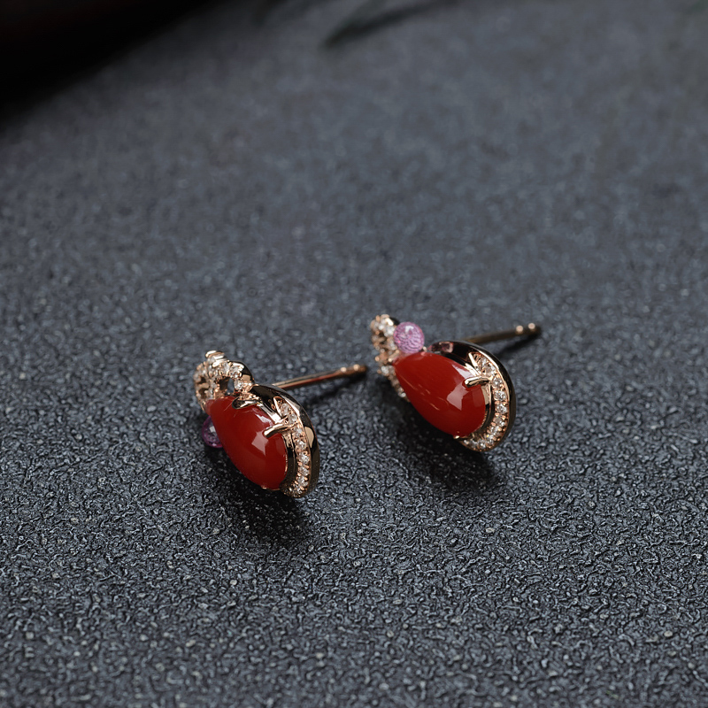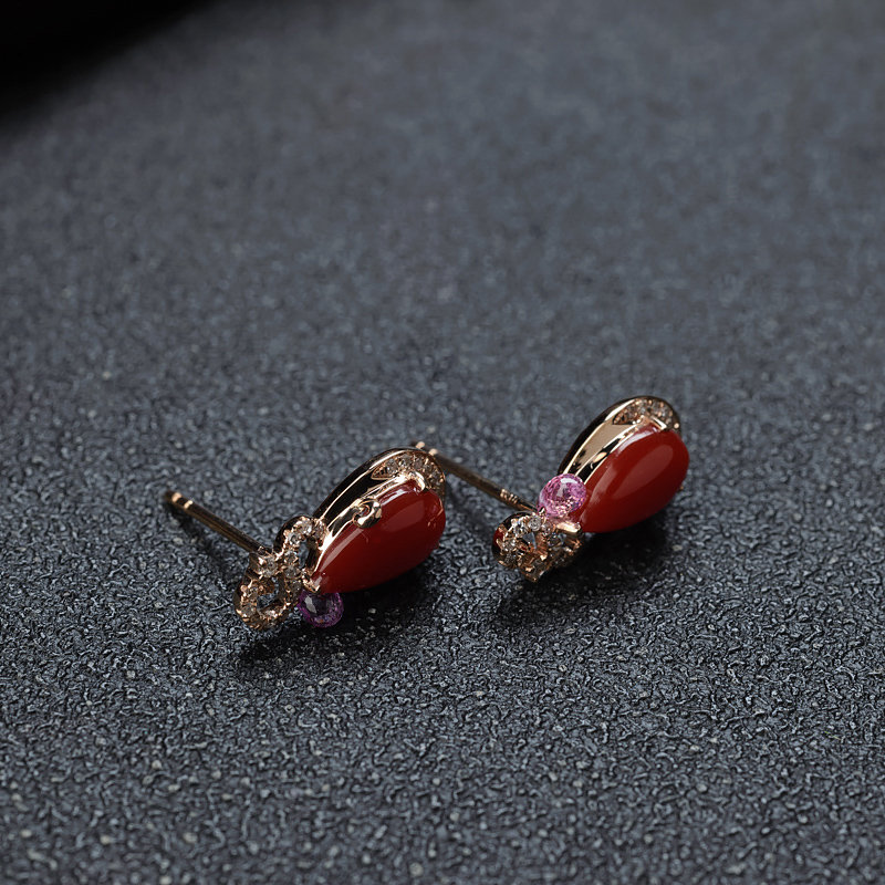 • [名  称] 18K阿卡牛血红珊瑚水滴耳钉