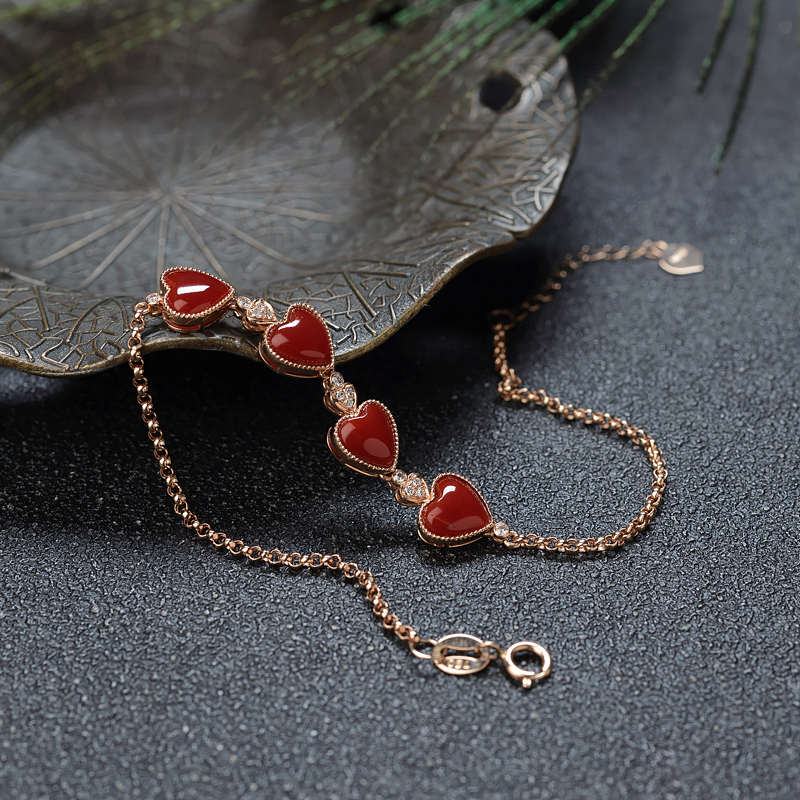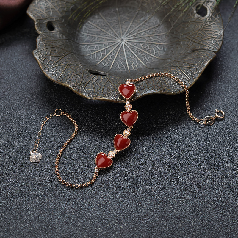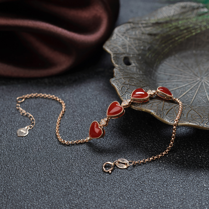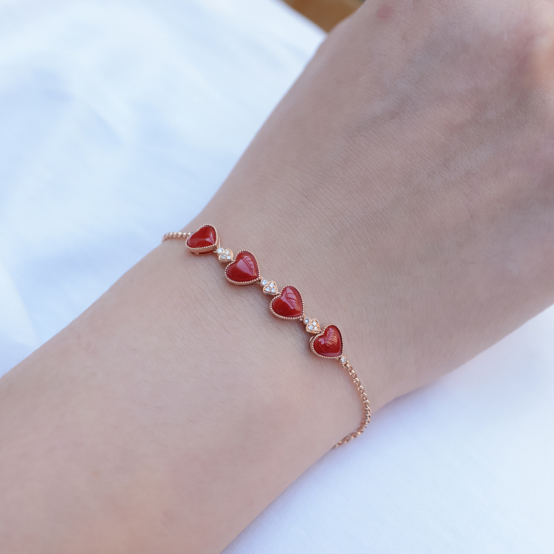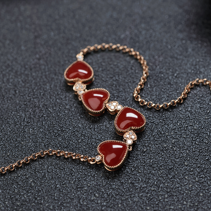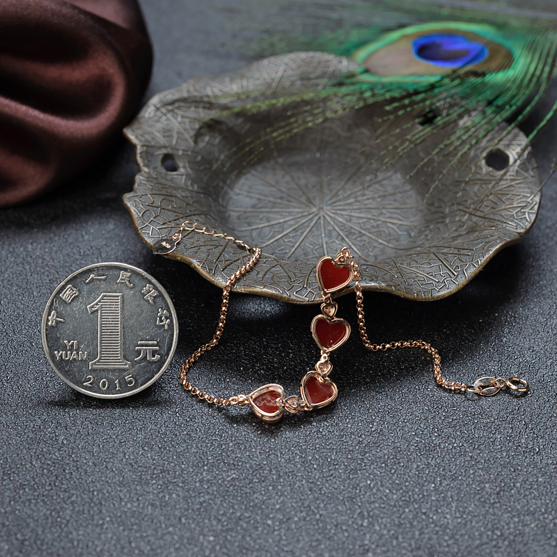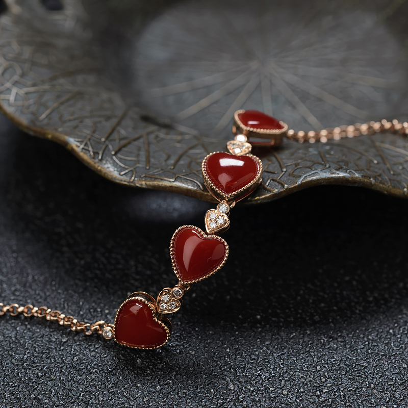 • [名  称] 18K阿卡牛血红珊瑚心形手链
