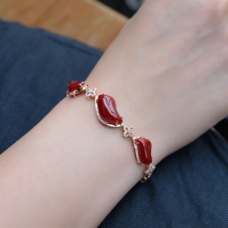 • [名  称] 18K阿卡牛血红珊瑚随形手链