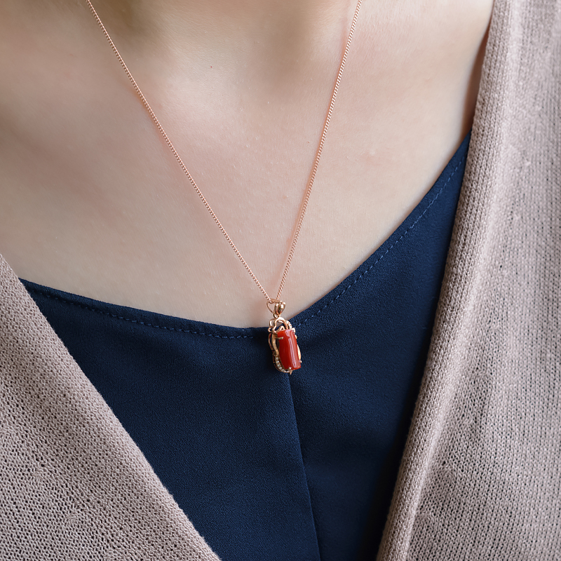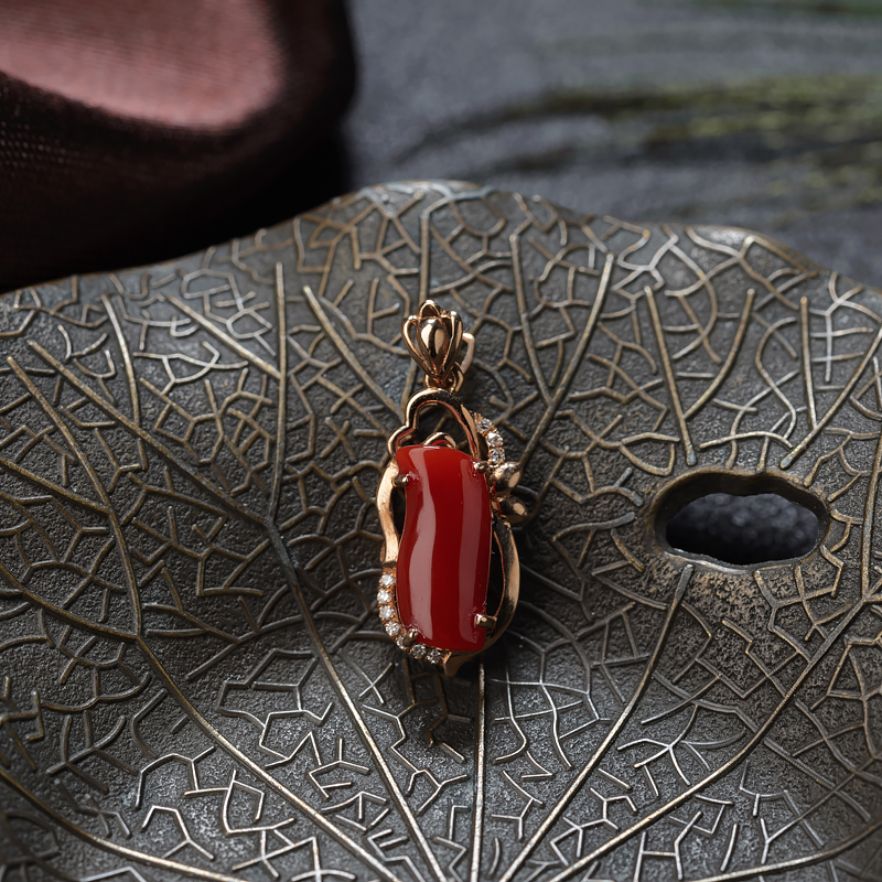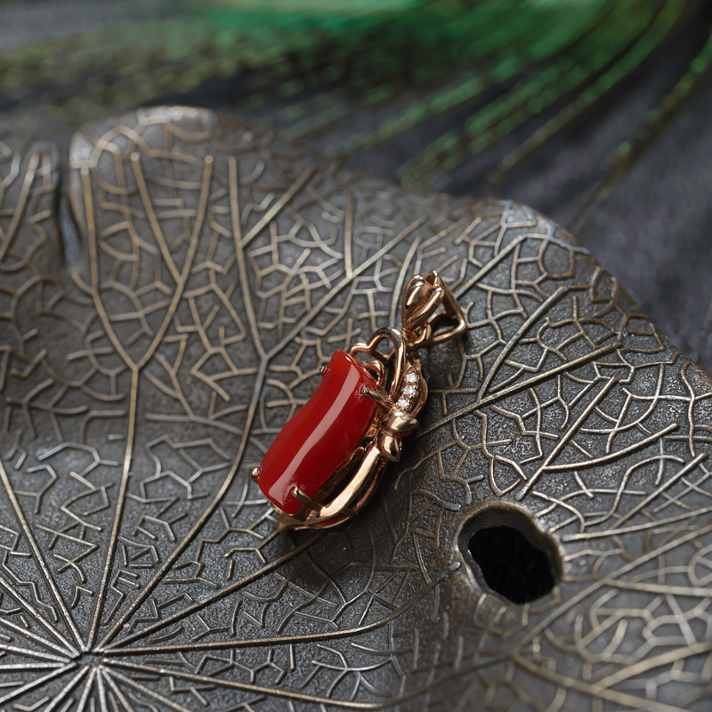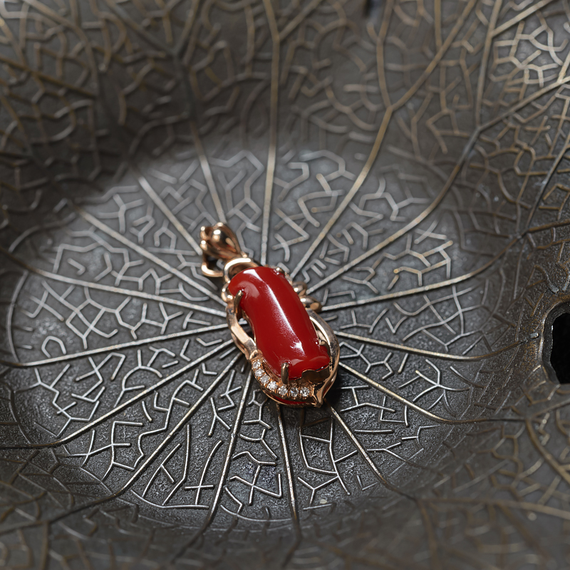 • [名  称] 18K阿卡牛血红珊瑚随形吊坠