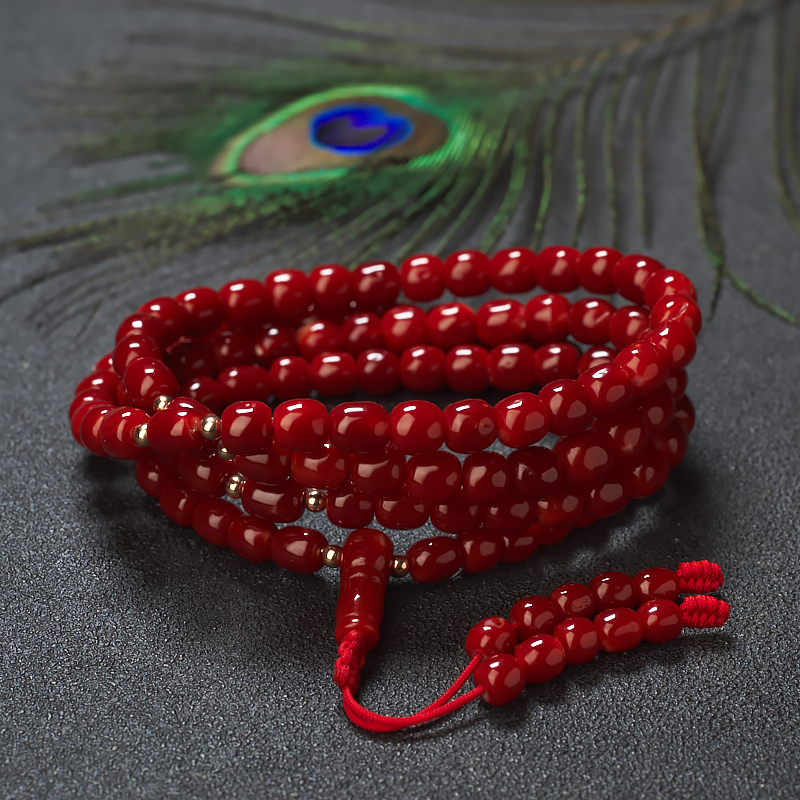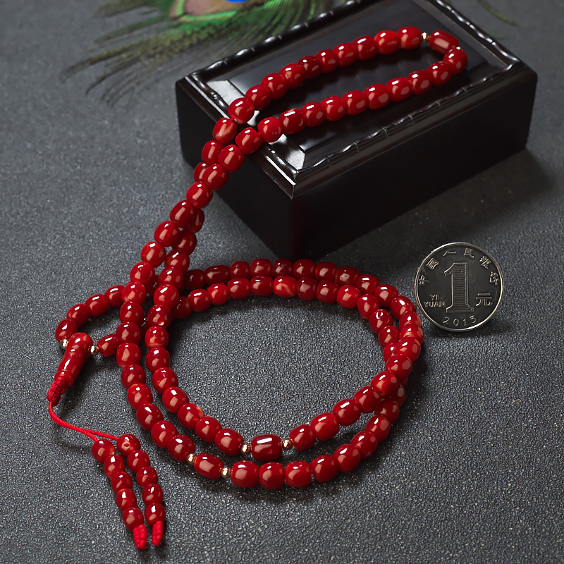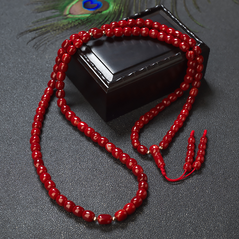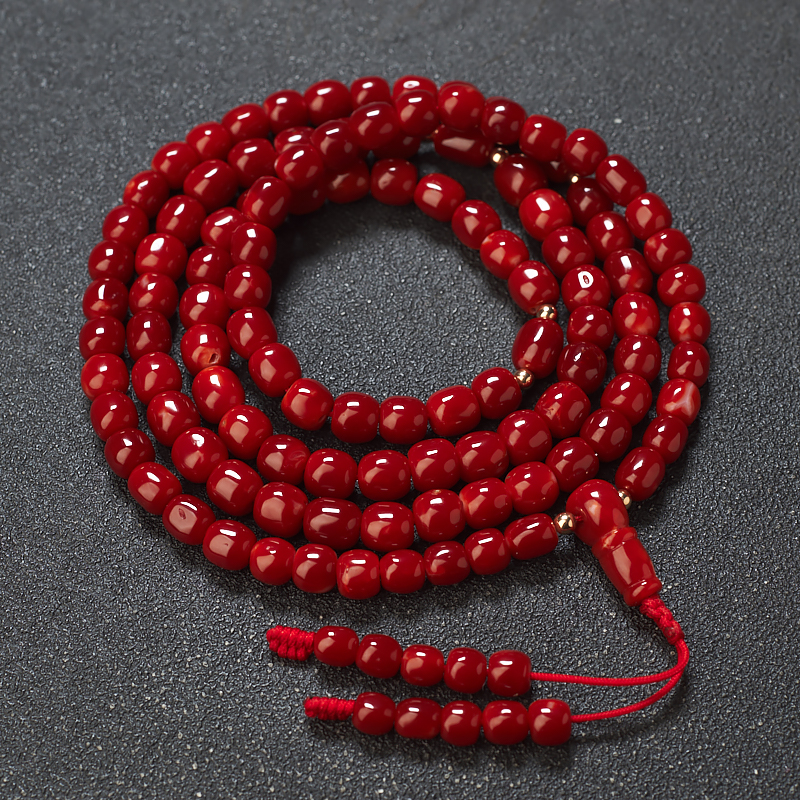 • 阿卡牛血红珊瑚桶珠108佛珠