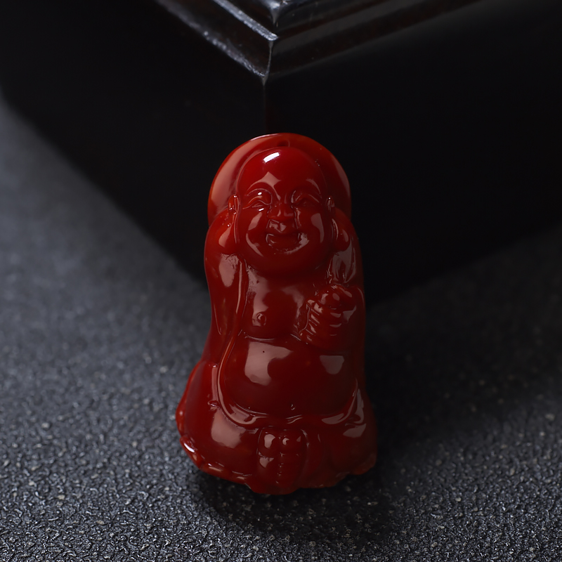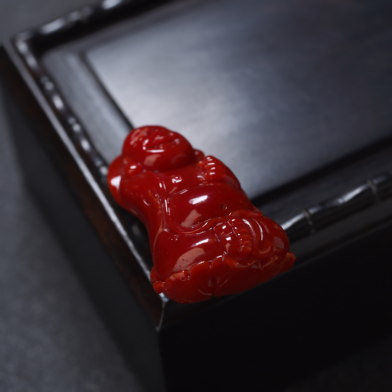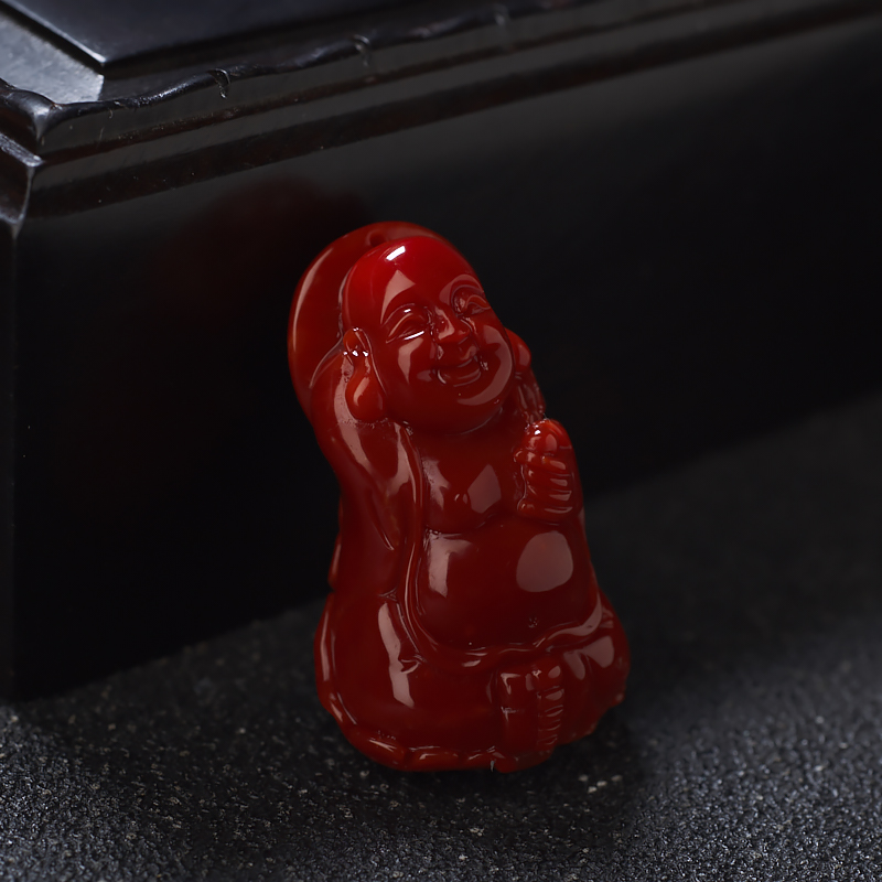 • 阿卡牛血红珊瑚弥勒佛吊坠