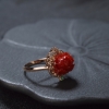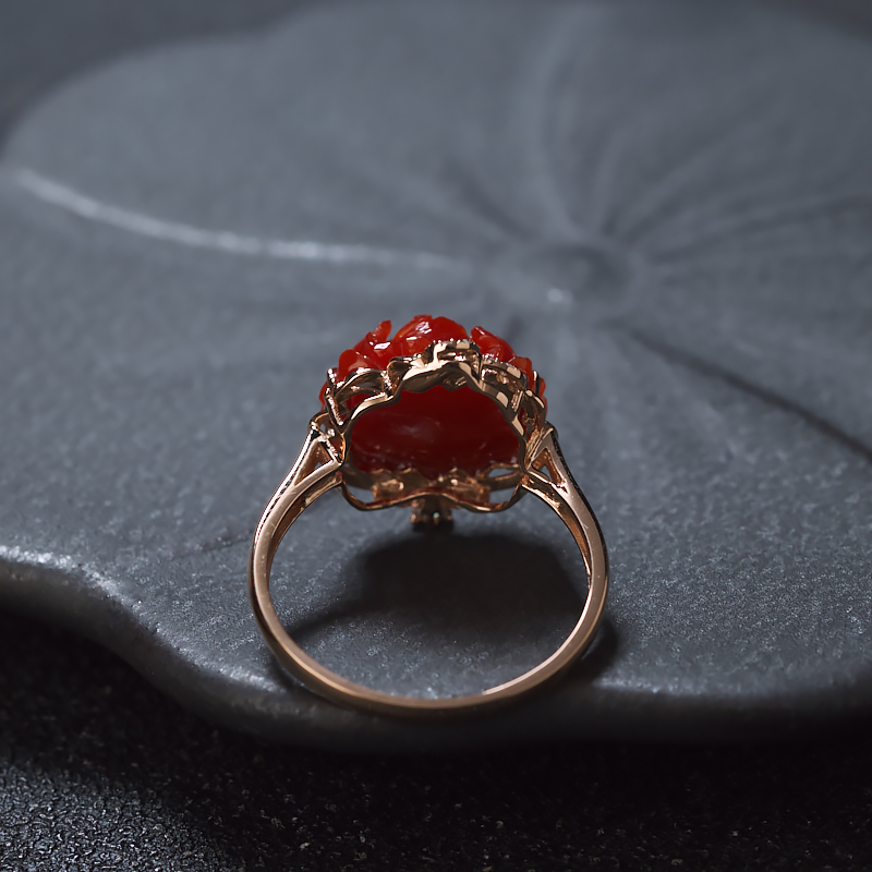 • 18K阿卡牛血红珊瑚牡丹花戒指