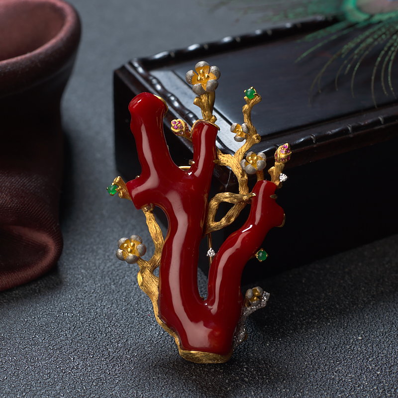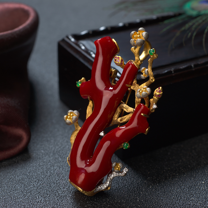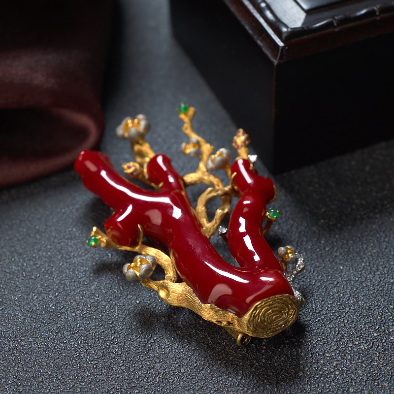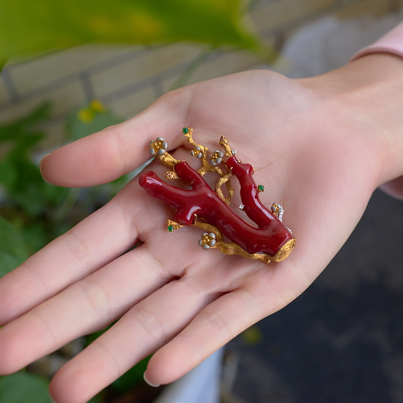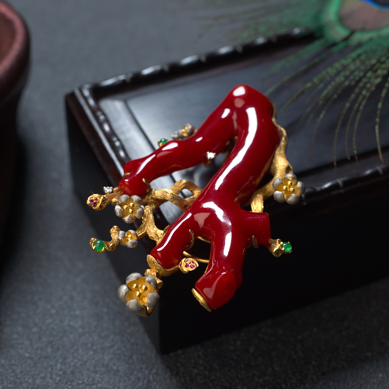 • 18K阿卡牛血红珊瑚树枝两用款