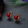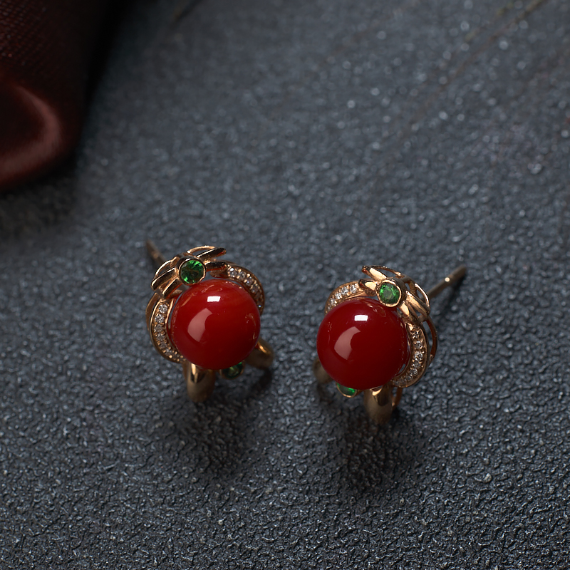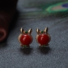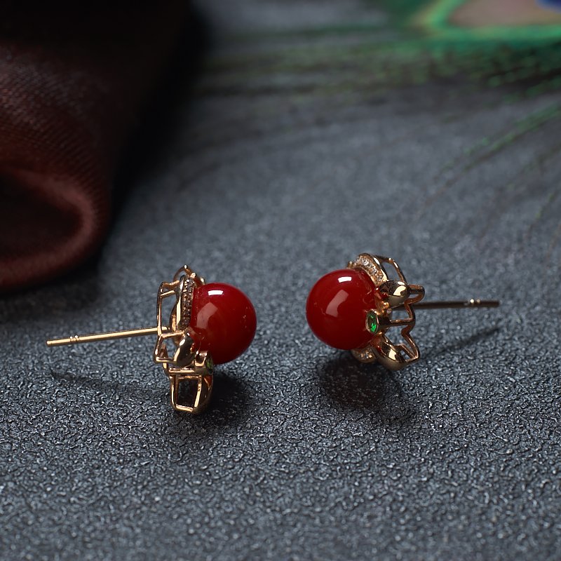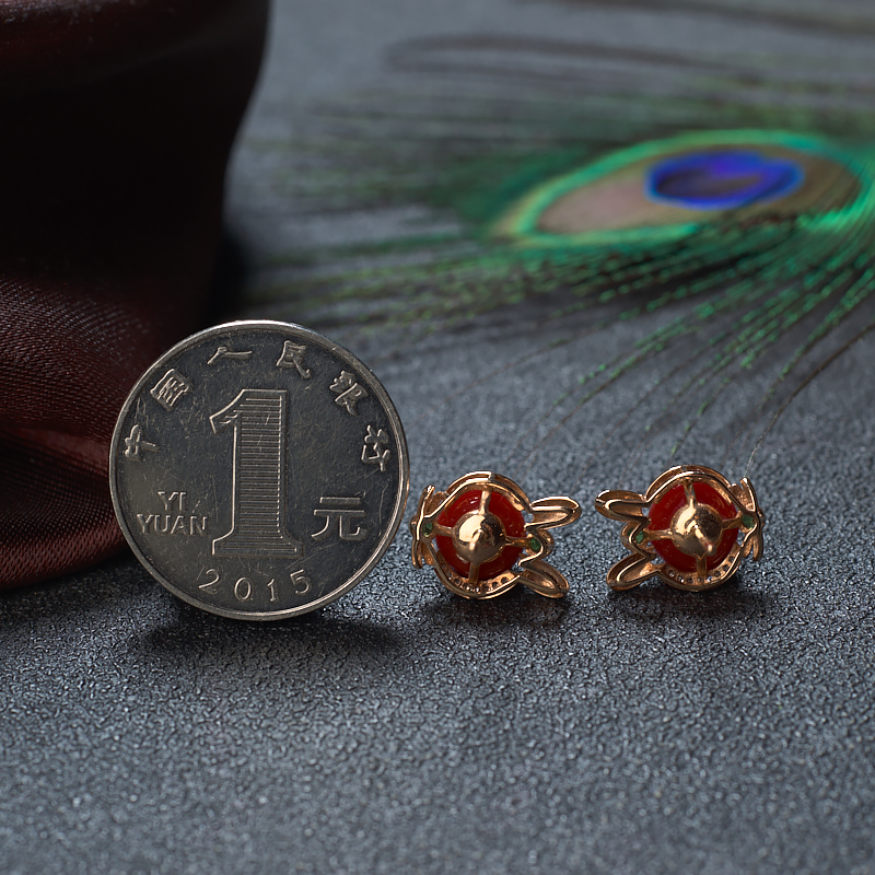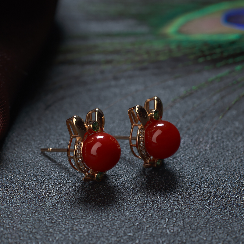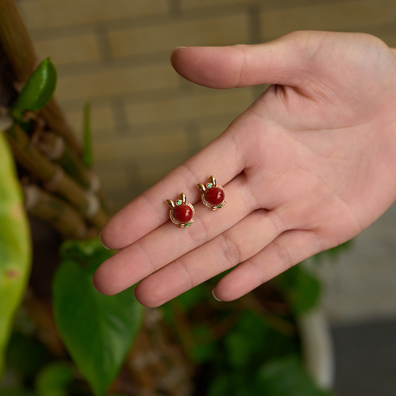 • 18K阿卡牛血红珊瑚兔子耳钉