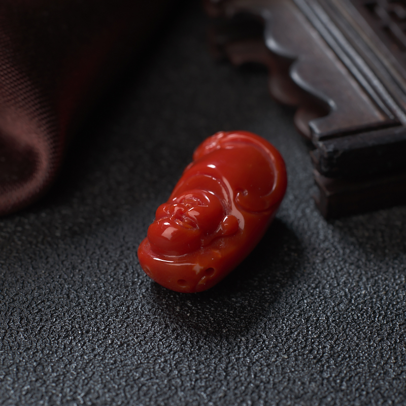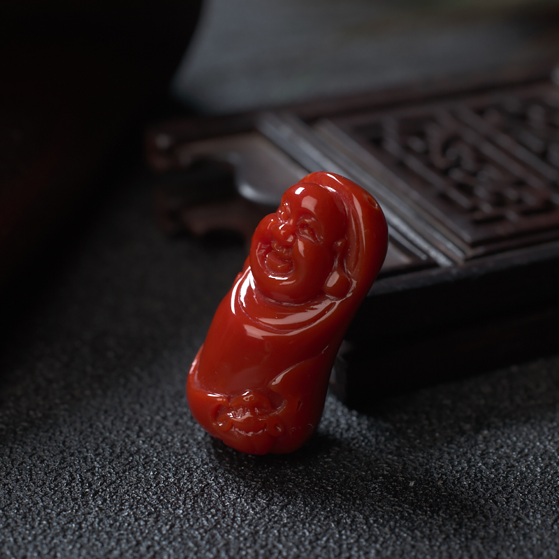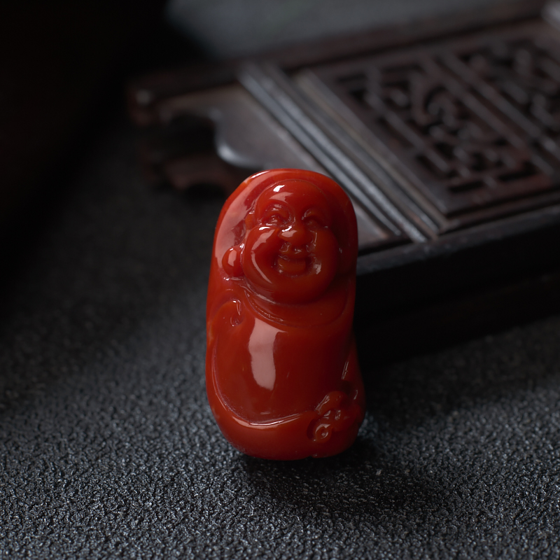 • 阿卡牛血红珊瑚弥勒佛吊坠