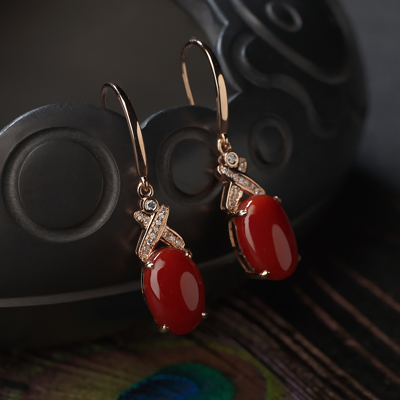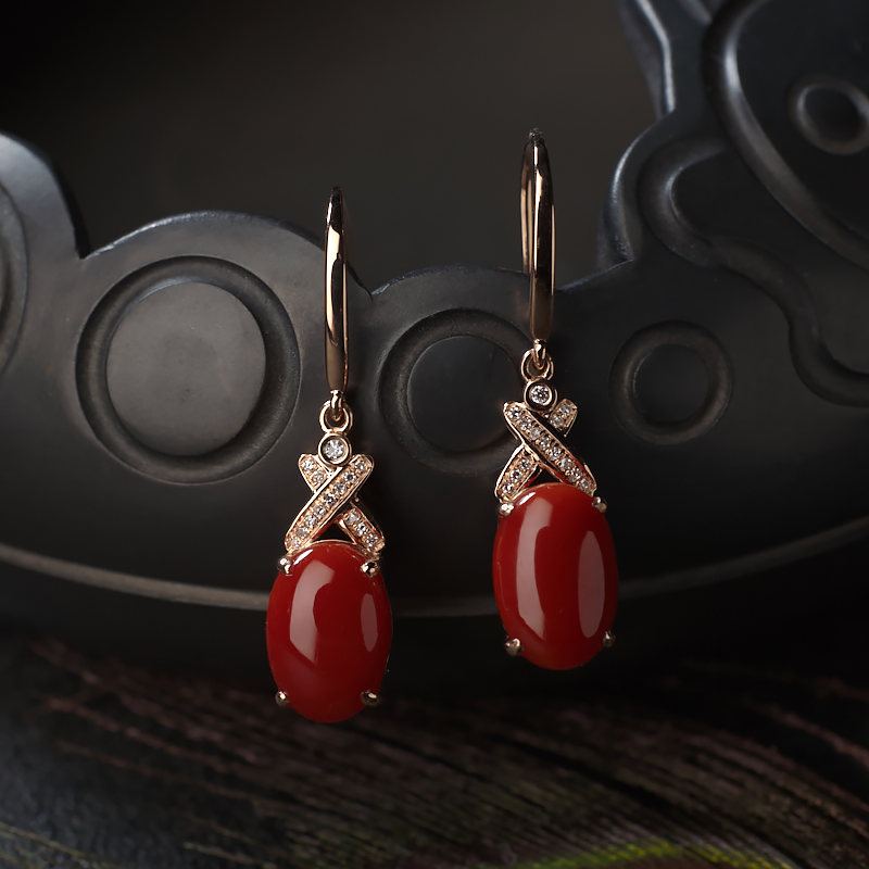 • [名  称] 18K阿卡牛血红珊瑚耳坠