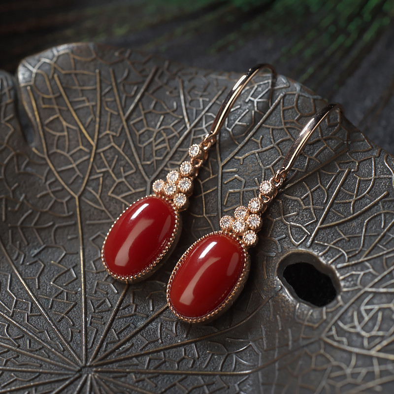 • [名  称] 18K阿卡牛血红珊瑚耳坠