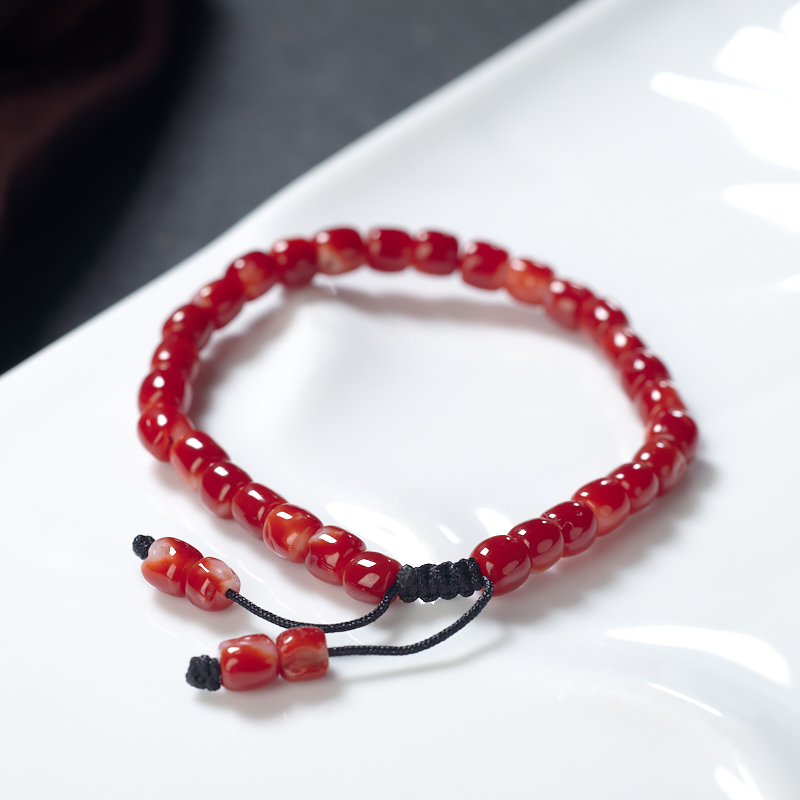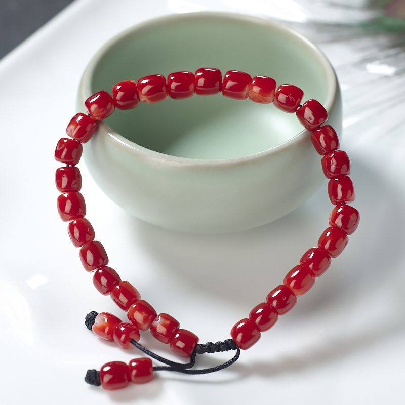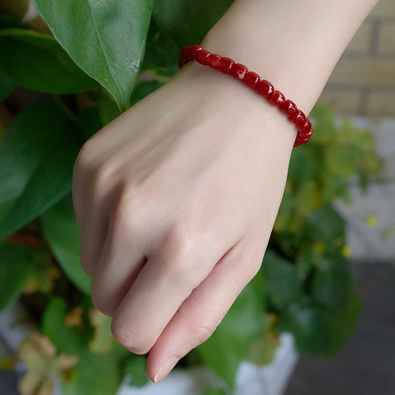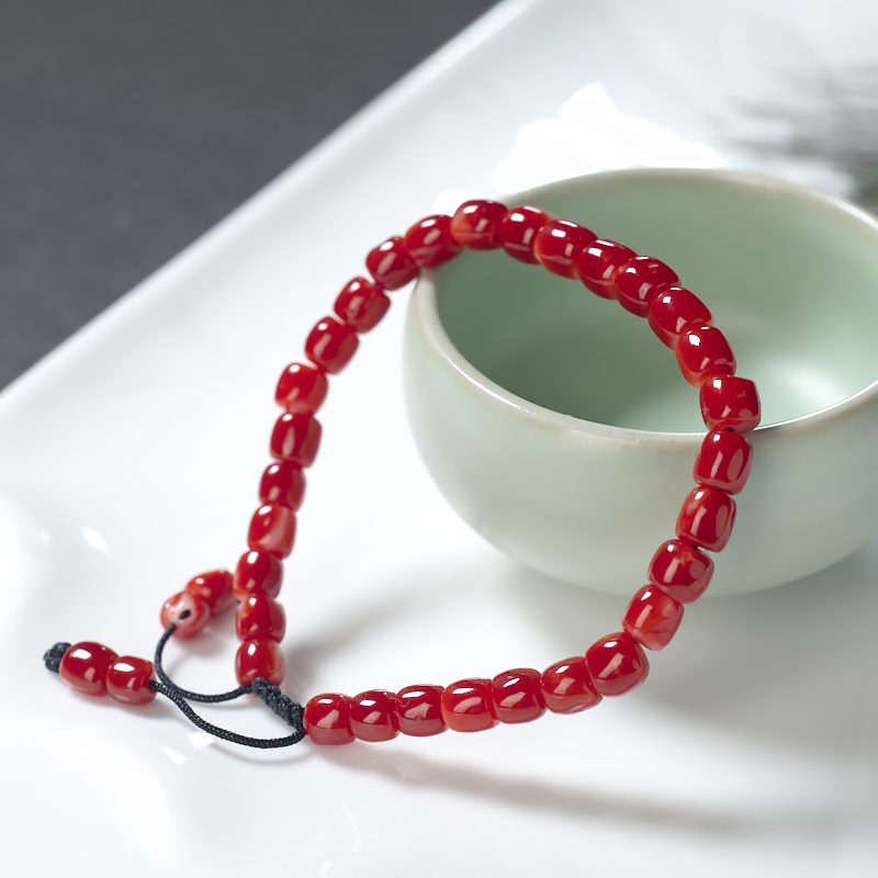 • 阿卡牛血红珊瑚桶珠单圈手串