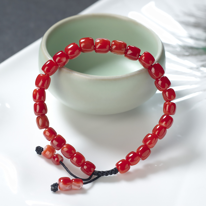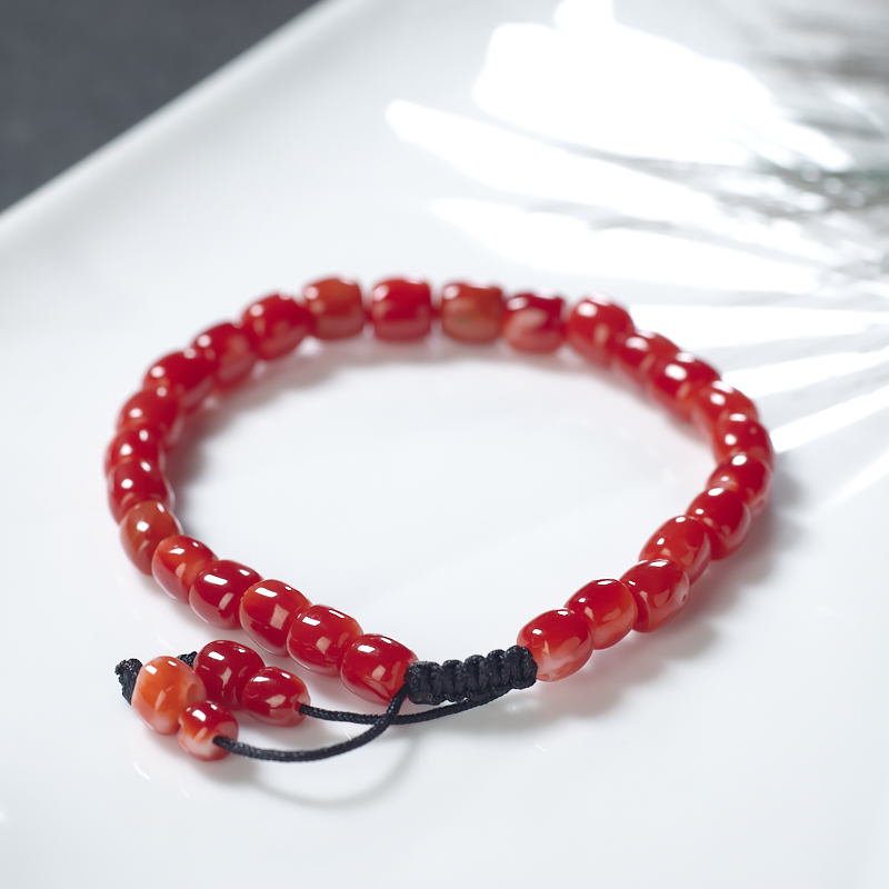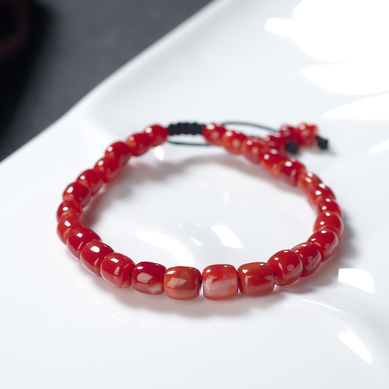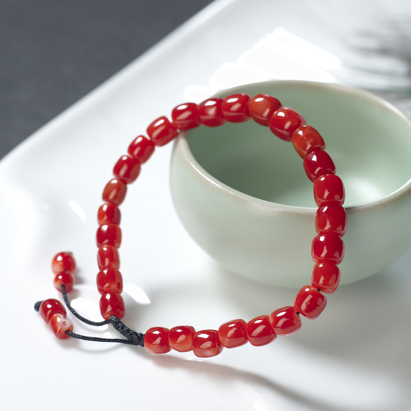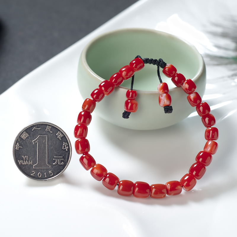 • 阿卡牛血红珊瑚桶珠单圈手串